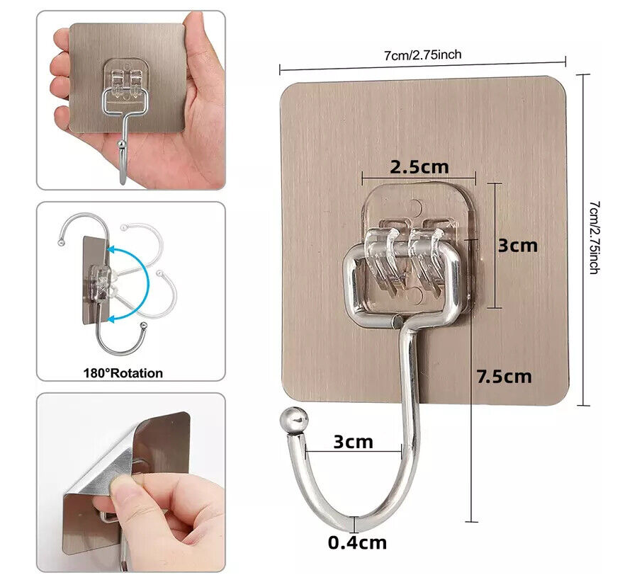?Stainless Steel Hook?: The stainless steel hooks part can rotate 180°, can use under the cabinet to hang stuffs and save more space, convenient for kitchen storage, but also can be used as ceiling hooks, coat hooks, key hooks, plant hook, picture hooks in office and bedroom.