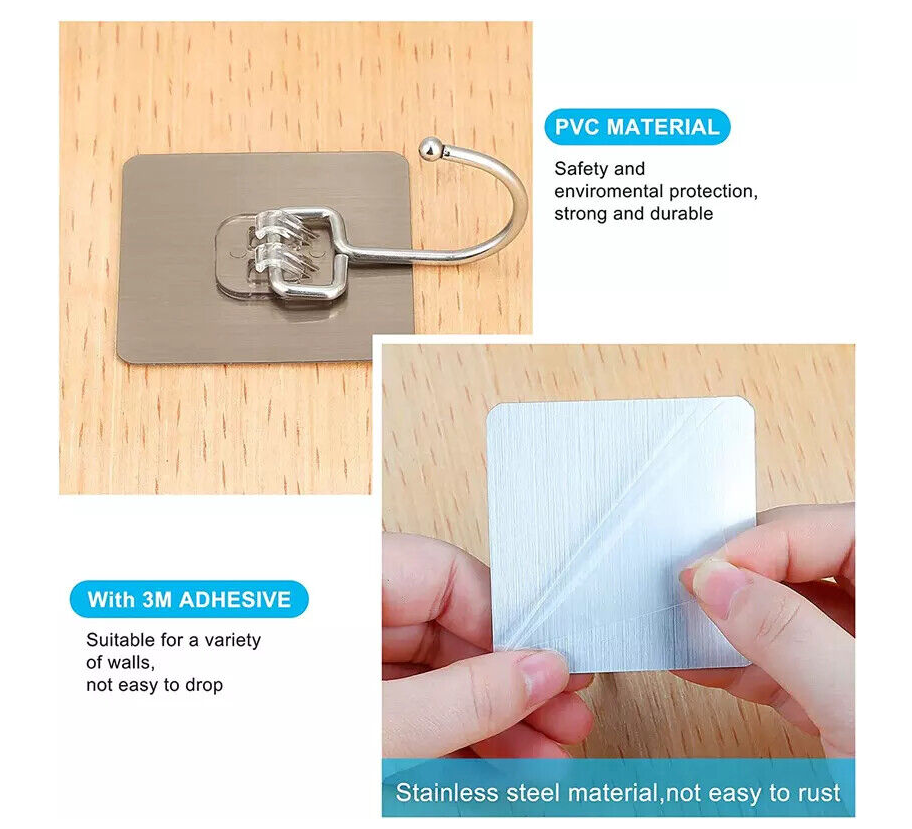 ?Easy to Use?: There is no need for messy or complicated installation as the hooks are self-adhesive. Just peel off the adhesive strip and stick the hook on a smooth surface. Maximum portability:33LB