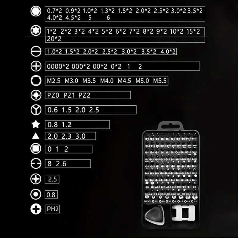 115pcs/set Cell Phone Kit / Car Precision Screwdriver Repair Tool Kit, Multi-function Electronic Screwdriver Set, Watch Mobile Phone Disassembly Repair Screwdriver Tools (Black)