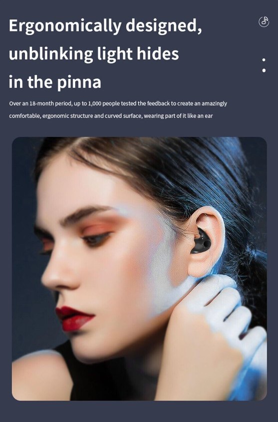 Invisible design and ergonomics: Invisible earplugs are designed according to the shape of the ear, with a very mini design style, which is very light and firmly fits the ear hook, suitable for long-term wear and will not cause discomfort to the ear.