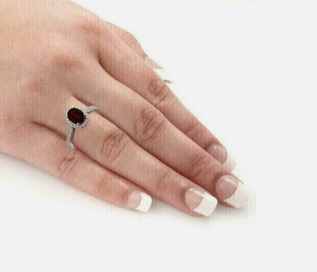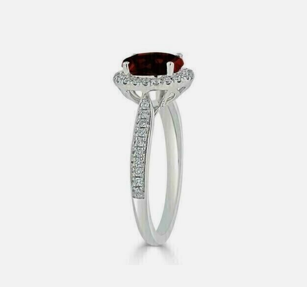 2.20Ct Oval Cut Lab Created Red Ruby Halo Engagement Ring 14k White Gold Plated