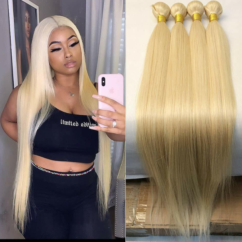 613 Blonde Hair 4 Bundles Weft Straight Brazilian Unprocessed Human Hair Weaves
