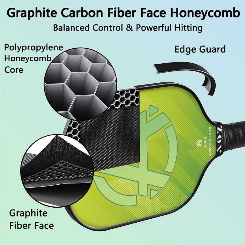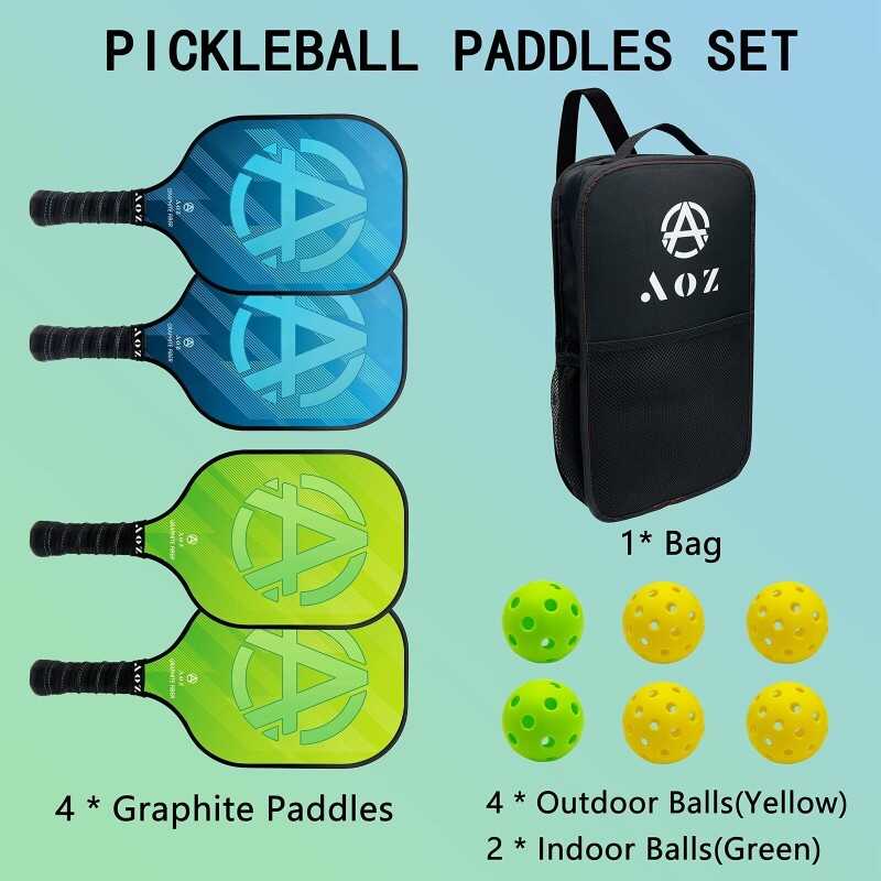 AOZINTL Pickleball Paddles Set of 4, Graphite Face Pickleball Paddles with Honeycomb Core and Premium Comfort Grip, Equipment with 6 Balls, Pickle-Ball Racquet with1 Portable Bag for Men and Women