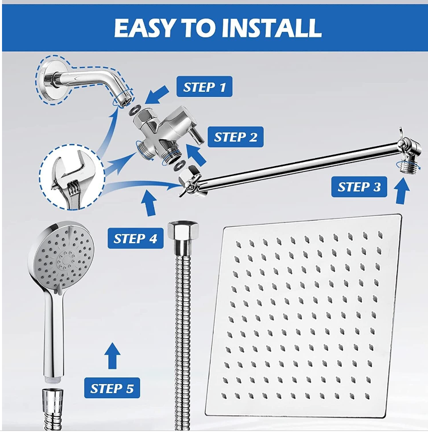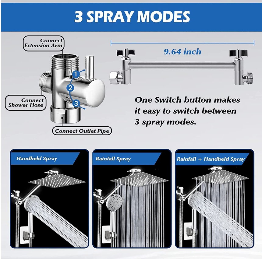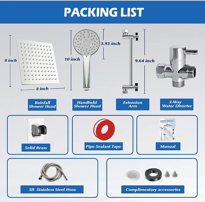 Ashwanth 8”Rain Shower Head with Handheld Spray Combo High Pressure Adjustable