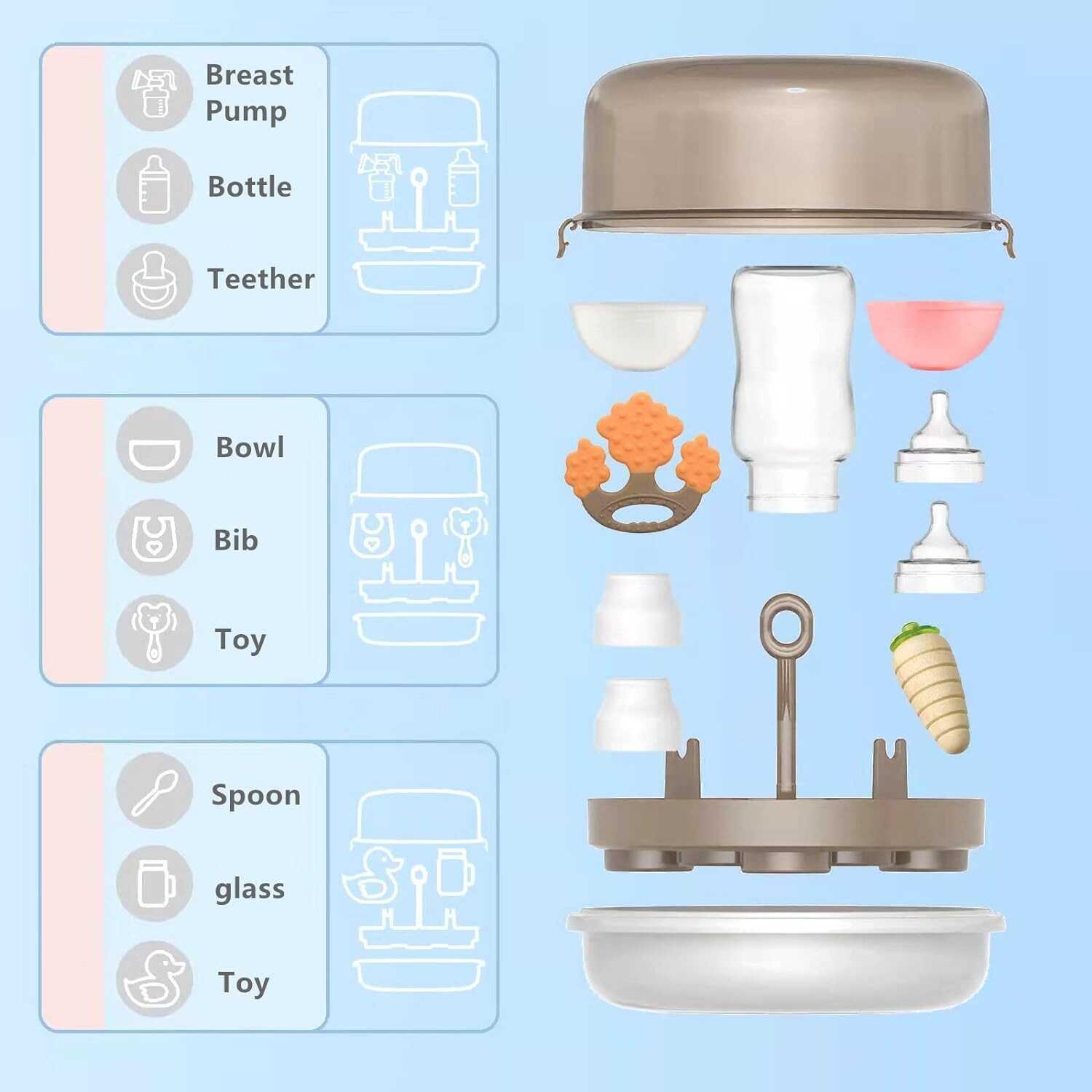 • ???? ????????? ?????? ??????????: Kill 99.99% of germs and bacteria in 2 MINS without chemicals with natural steam to keep your baby bottles, breast pumps, pacifiers, teethers and plastic toys clean!