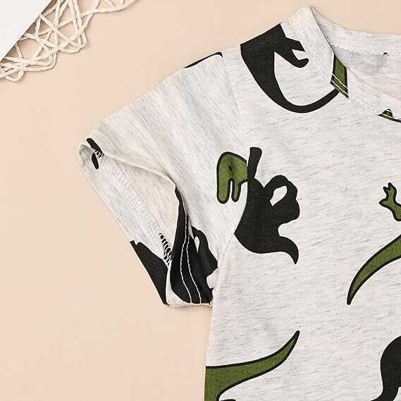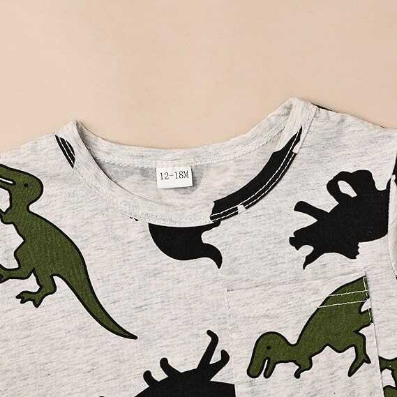 • Dinosaur Printed Design: Full dinosaur printed design, your baby will love this shirt, convenient small pockets for storing snacks or small toys. Elastic waistband is comfortable to wear, and the pants are adorned with a bow decoration at the waist, making them extremely cute.