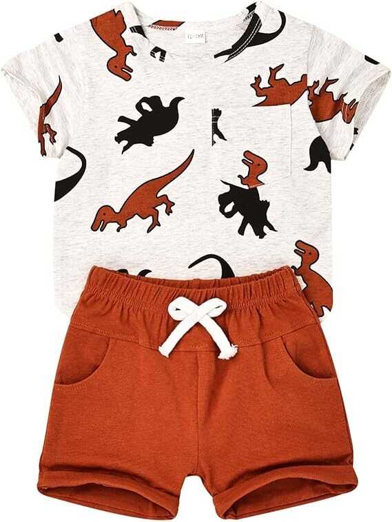 Baby Boy Clothes Toddler Boy Clothes Summer Outfits Dinosaur T-Shirt Pocket Short Pants Set 12 Months to 4 Years Old