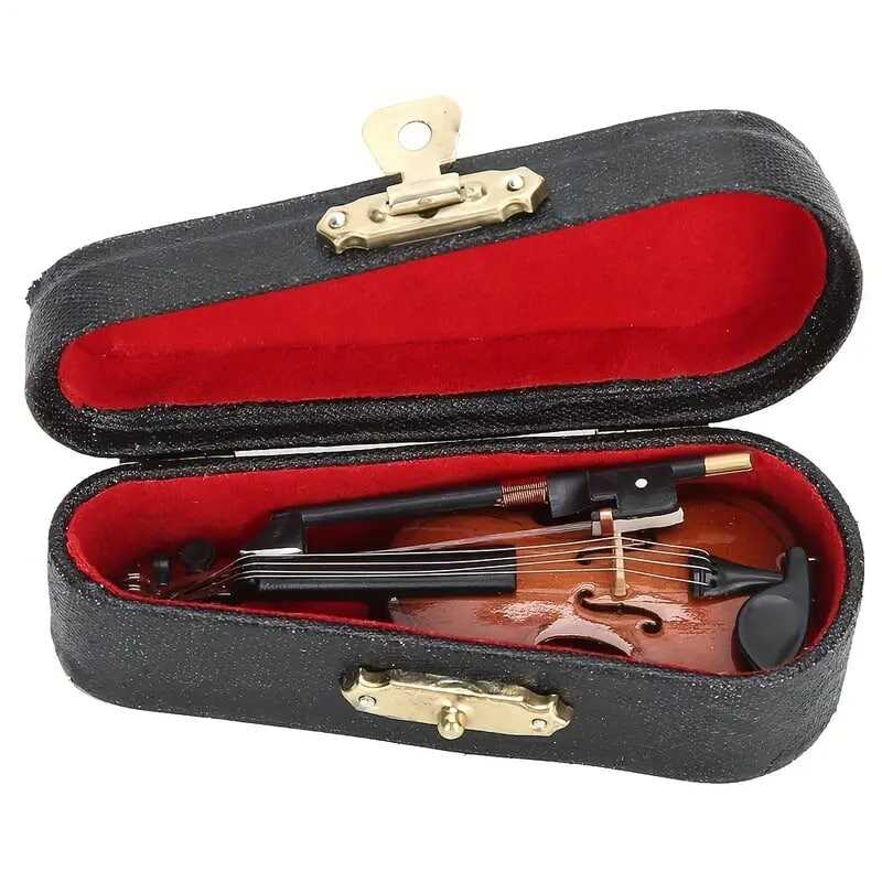 Beautiful Wooden Miniature Violin Set: Stand, Bow, Case, And Musical Instrument - Perfect Home Decoration,Christmas And Halloween Gift,Thanksgiving Gift!