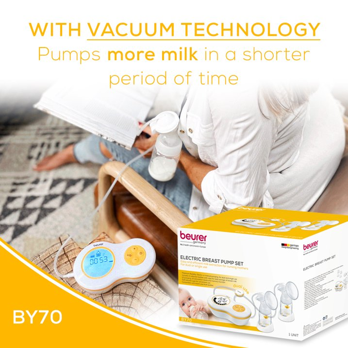 Breastfeeding mothers can pump their milk easily and conveniently at home or on the go with the Beurer Dual BY70 Milk Breast Pump. The comfortable vacuum technology ensures the most natural possible simulation of the drinking process.