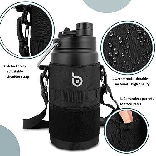 BOTTLE BOTTLE Insulated Water Bottle 64 oz with Straw and Dual-use Lid Half G...