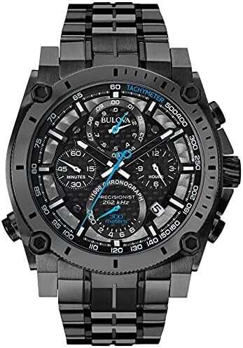Bulova Men's Icon High Precision Quartz Chronograph Watch, Curved Mineral Crystal, 300m Water Resistant, Continous Sweeping Secondhand, Luminous Markers