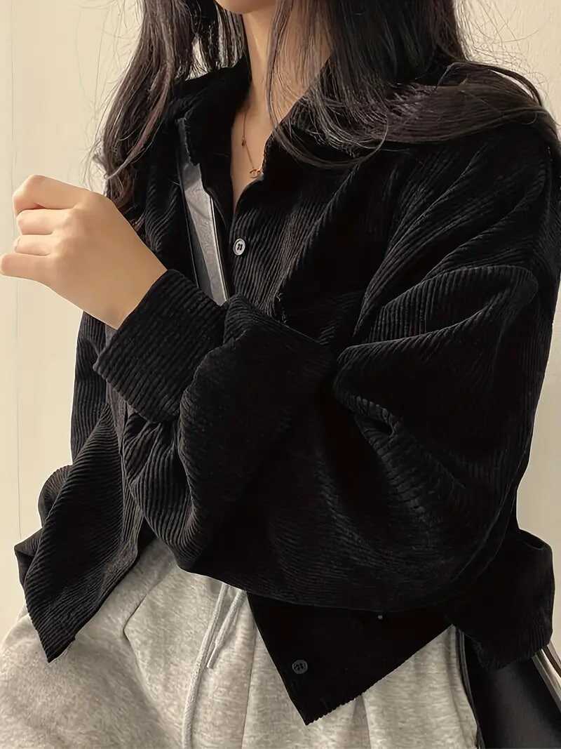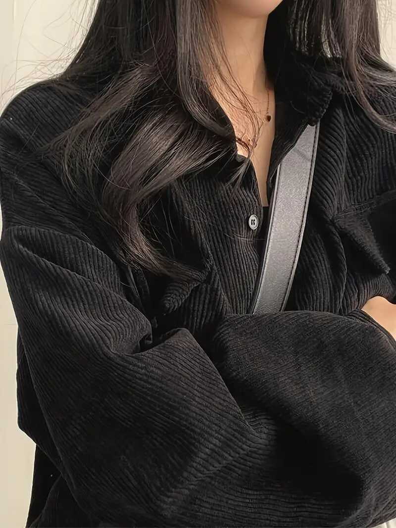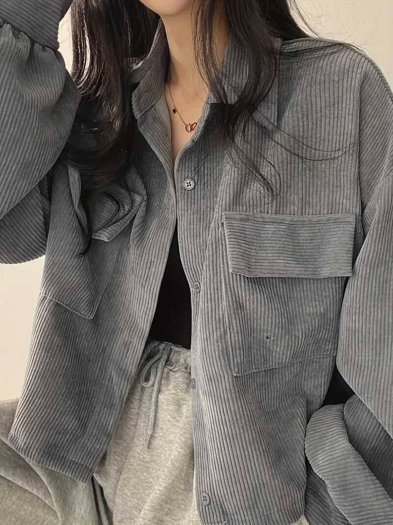 Button Front Flap Pockets Jacket, Casual Long Sleeve Jacket For Fall & Winter, Women's Clothing