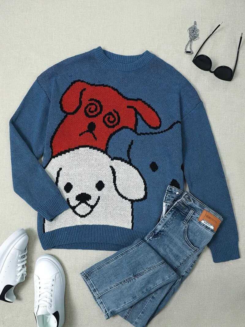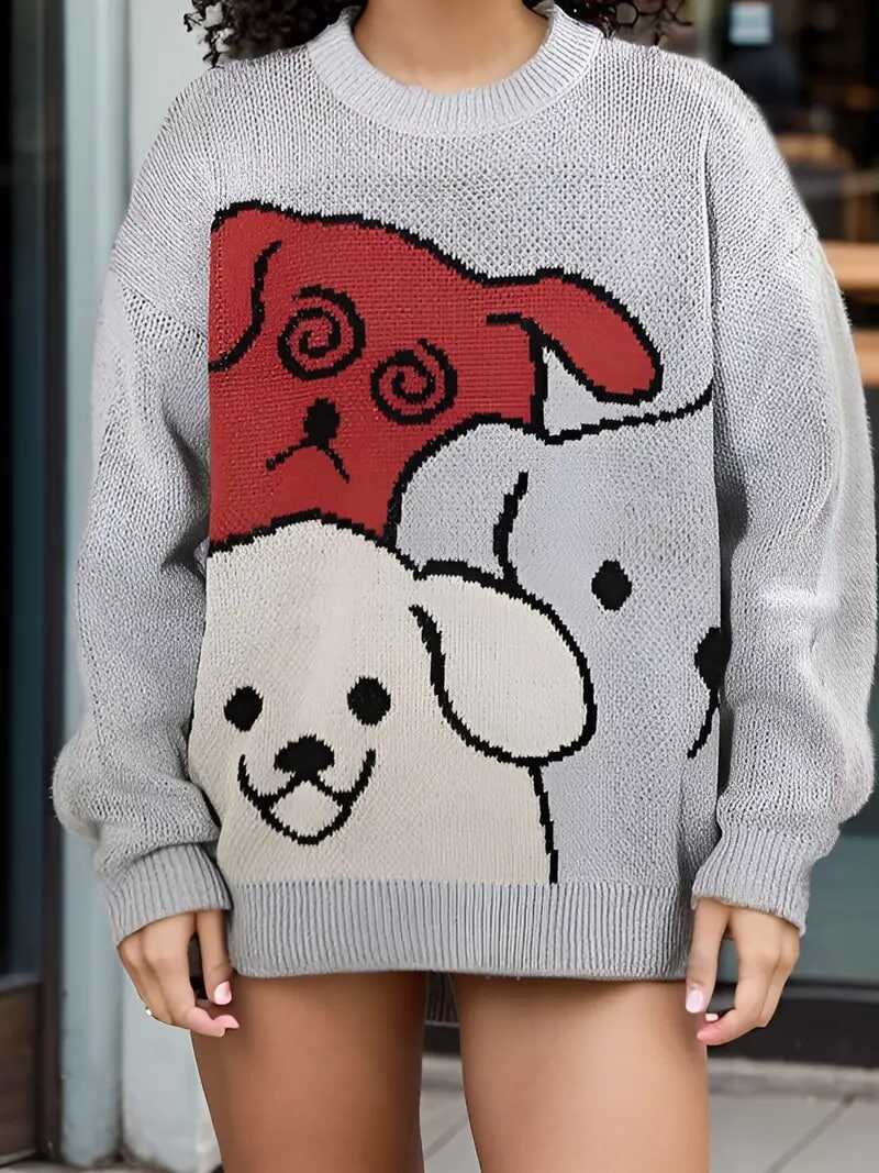 Cartoon Dog Casual Crew Neck Sports Sweater, Longs Sleeve Casual Pullover Sweater, Women s Tops details 1Cartoon Dog Casual Crew Neck Sports Sweater, Longs Sleeve Casual Pullover Sweater, Women s Tops details 1