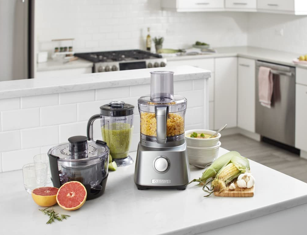 Now home chefs can save time and counter space with the all-in-one versatility of Cuisinart Kitchen Central. Equipped with 3 attachments, this innovative multipurpose kitchen essential easily and seamlessly converts from an 8-cup food processor to a 40-oz. blender to a powerful juice extractor. Prep, blend, and juice to perfection with a simple turn of the dial. The 500-watt motor ensures high-performance and plenty of power for whipping up a wide variety of delicious dishes, desserts, and drinks