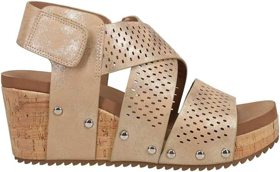 The guilty pleasure wedge sandals are all the rage right now! With this fun and open strap look these are bound to make a statement. And nothing tops the comfort of that famous Corkys foam. The velcro strap makes these so easy to adjust to the comfort and fit of your foot.
