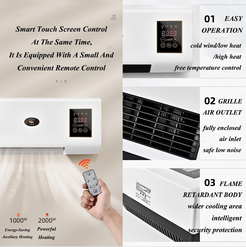 The wall unit air conditioner can be used not only as an air conditioner for cooling (natural wind) but also as a heater for heating to meet the needs of different seasons. Note: This product can not be cooled, blowing natural wind and hot air