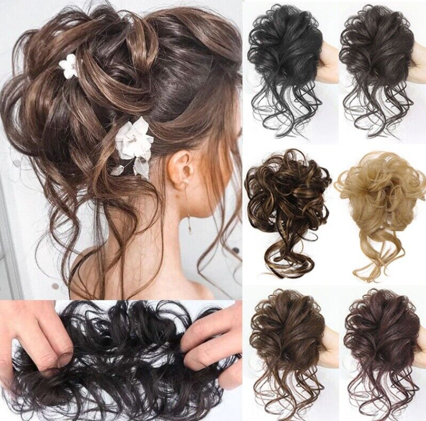 Curly Messy Bun Real as human Hair Piece Scrunchie Updo Wrap Hair Extension