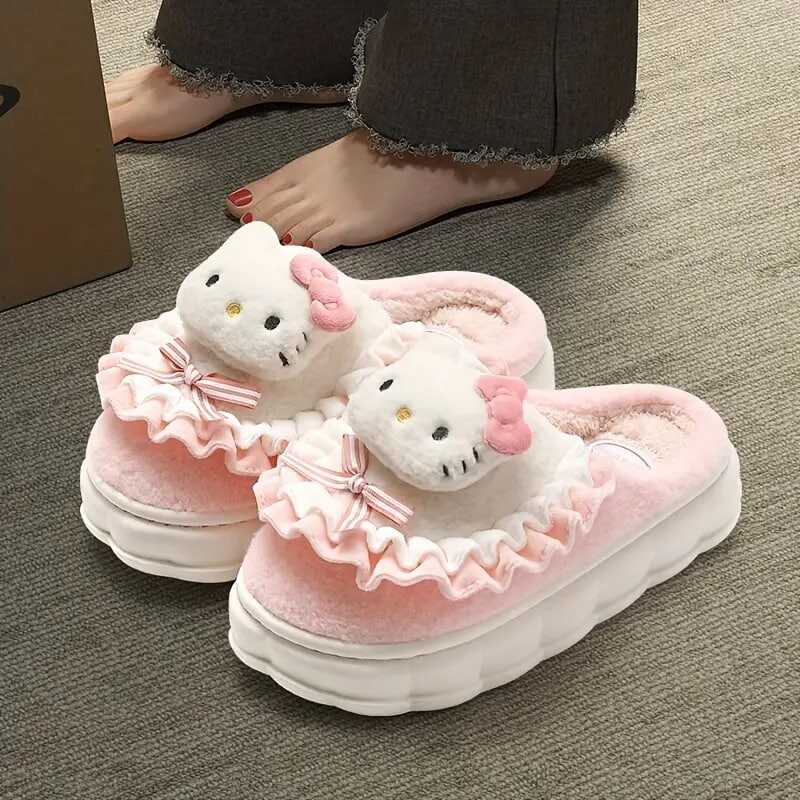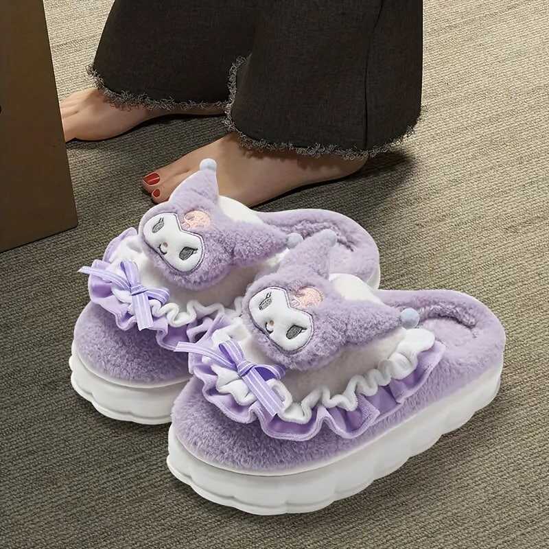 Cute Cartoon Sanrio Kulomi Novelty Slippers, Hellokitty & Melody Kawaii Non-slip Soft Fuzzy Home Slippers, Plush Cozy Shoes