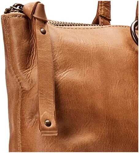 Antique pull up leather shopper shoulder tote from Frye's best selling Melissa collection. Zipper Closure. 1 interior zip pocket, 3 slip pockets and 1 exterior back slip pocket. Measurements: 16.25"H X 12.75"W; 9" Strap Drop.
