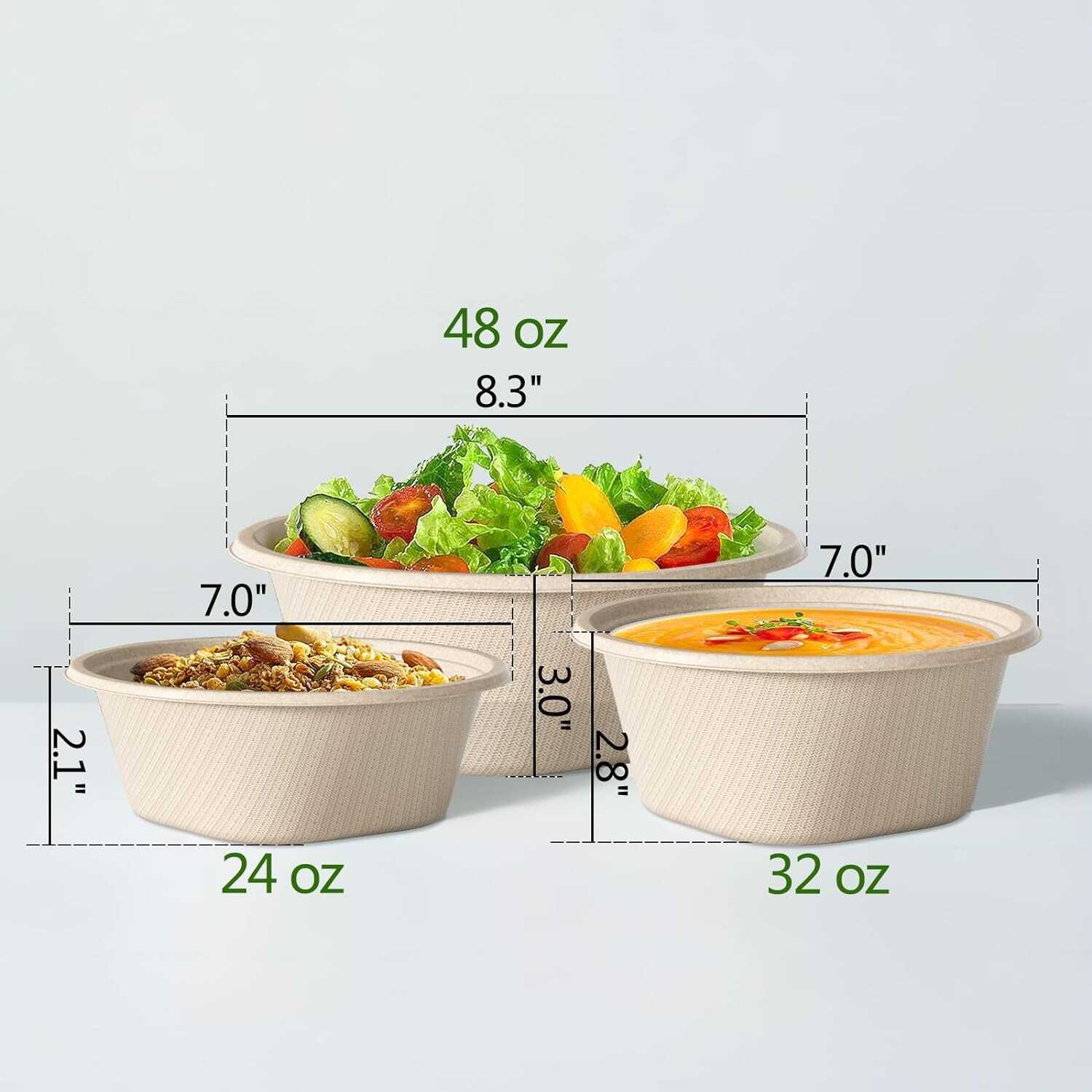 • ?【Eco Friendly Sugarcane Fiber】Homestockplus 24 oz disposable bowls are crafted with 100% sugarcane fiber, a sustainable and biodegradable material. These eco friendly bowls not only contribute to environmental protection but are also free of harmful chemicals, making them perfect for serving both hot and cold food.