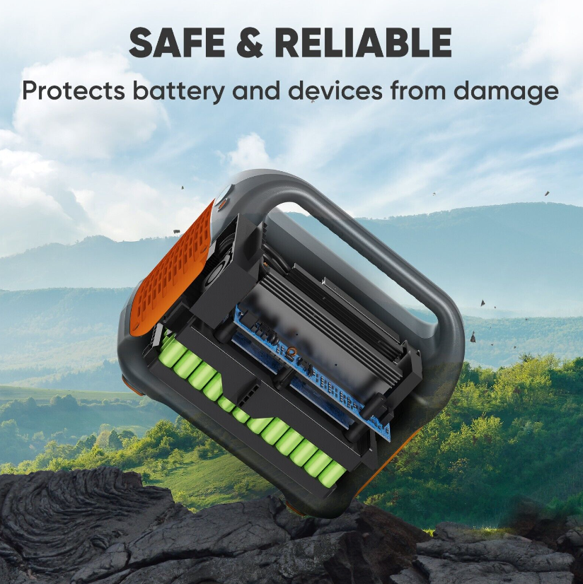 Safe & Reliable for Outdoor Camping: Features industry-leading cylindrical batteries (popular with manufacturers of Electric Vehicles) that meet UL safety standards. Certified with Impact-Resistance Class 9, passing the UL drop test (withstanding 3 drops from 0.9m height on any surface). The pure sine wave inverter delivers constant voltage that protects equipment from damage.