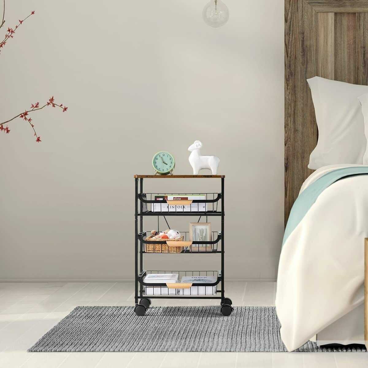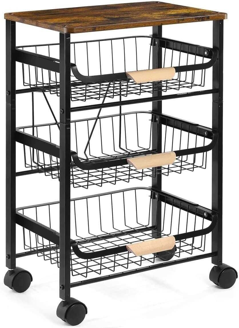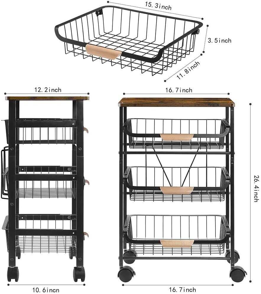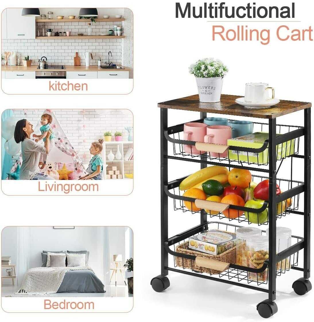 Kitchen Cart with Storage &Wheels 4 Tier Rolling Utility Cart Metal Pantry Rack
