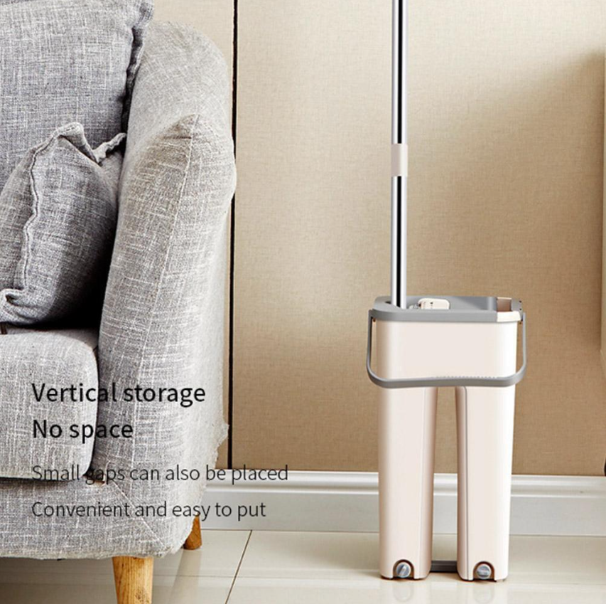 3.Hygienic and mess-free: The built-in bucket features a self-wringing mechanism that allows you to squeeze out excess water from the mop head without getting your hands wet or dirty. This helps to prevent the spread of germs and