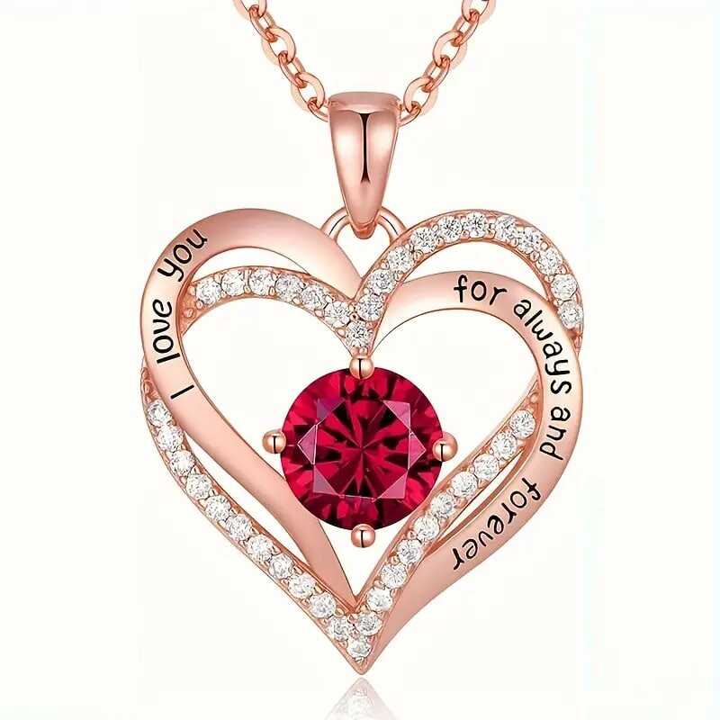 Luxury Red Zircon Pendant Necklaces With Rose Flower Gift Box For Girlfriend Women I Love You Gifts, Romantic Anniversary Party Birthday Wedding Gift Jewelry