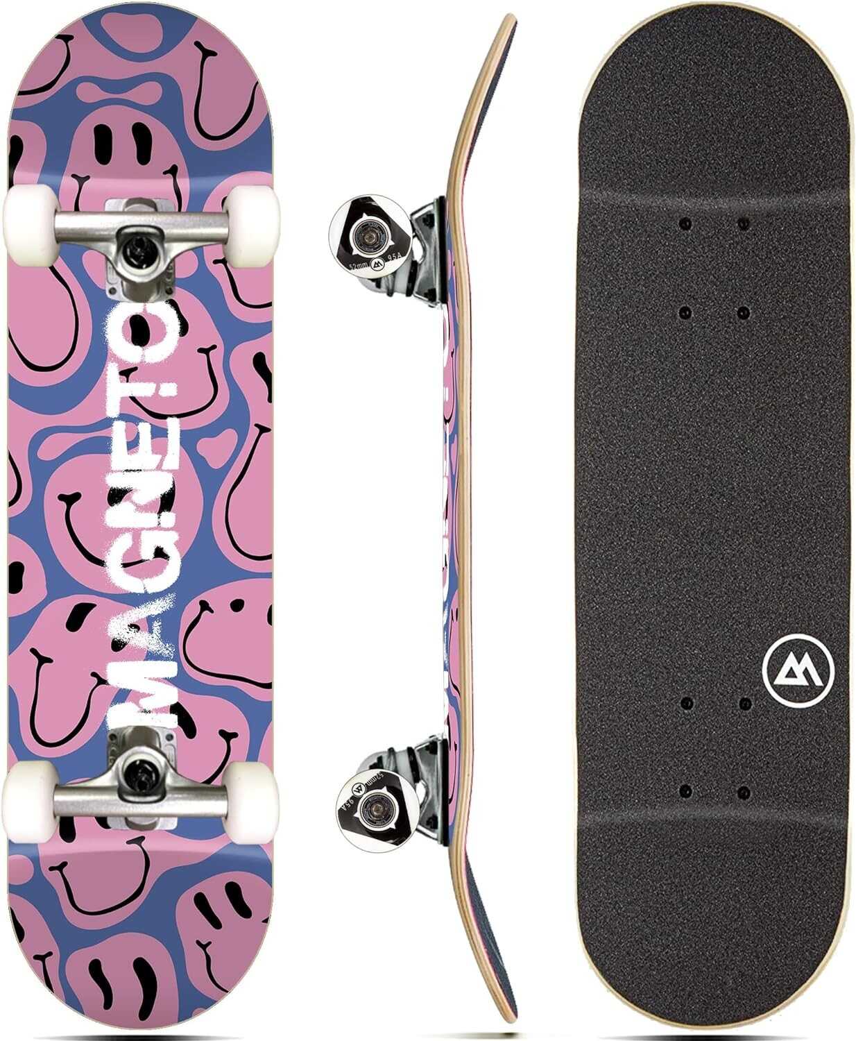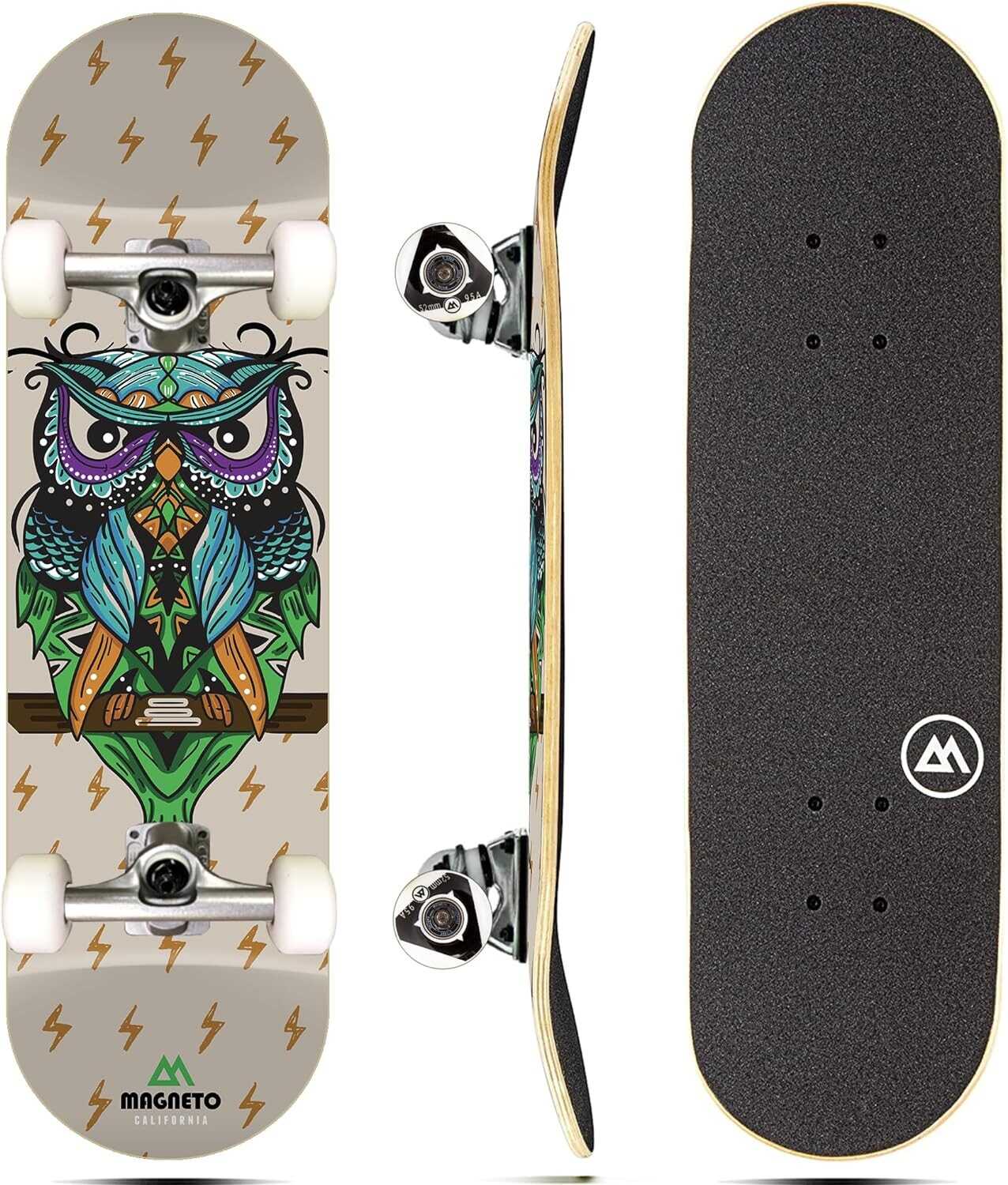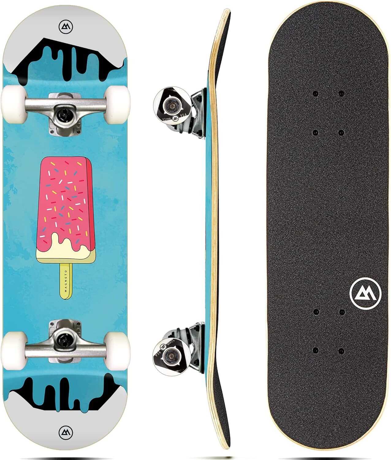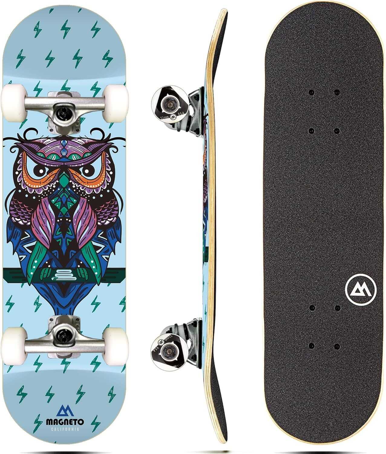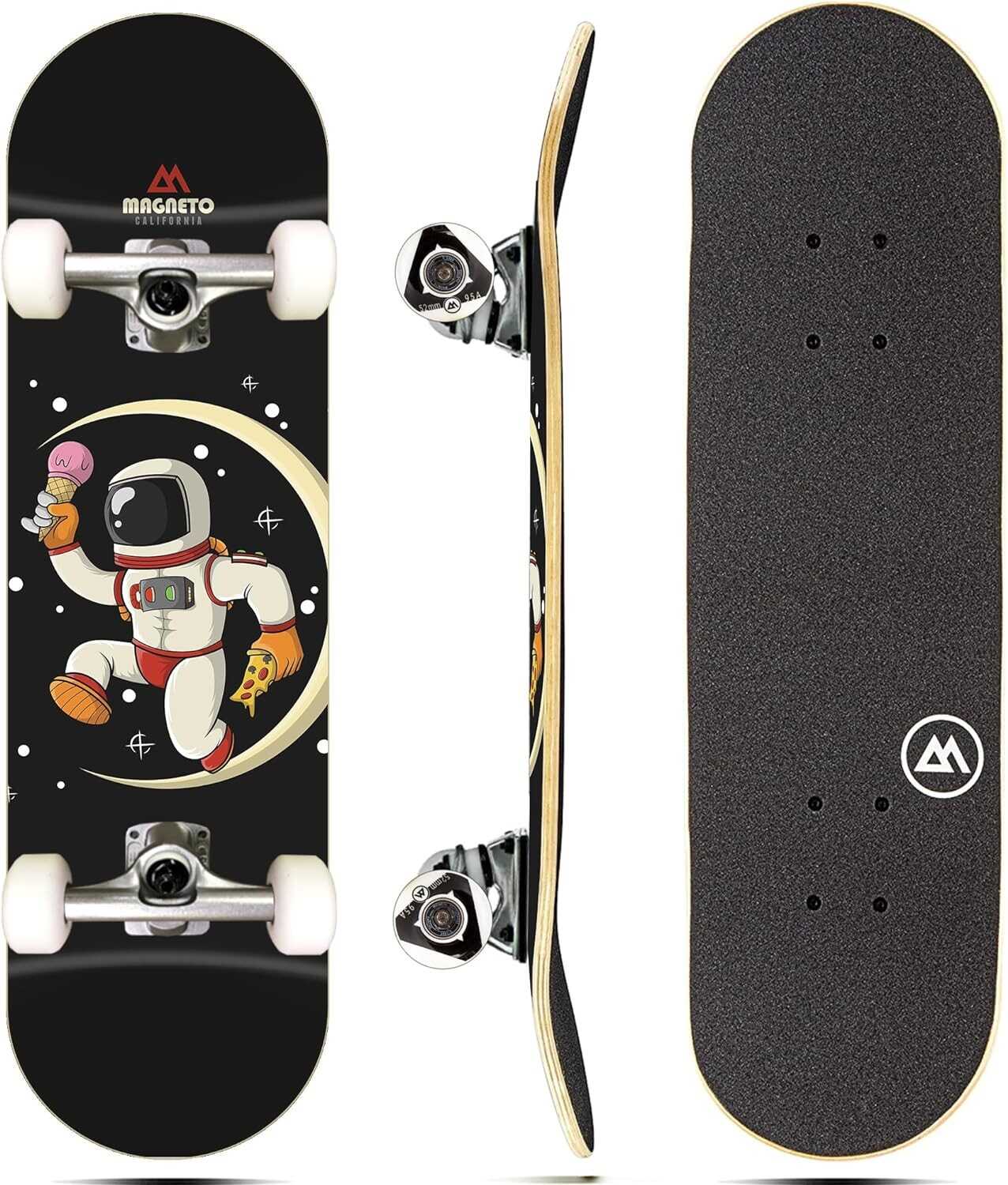 Magneto Complete Skateboard | Maple Wood | ABEC 5 Bearings | Double Kick Concave Deck | Kids Skateboard Cruiser Skateboard | Skateboards for Beginners, Teens & Adults (Free Stickers Included)