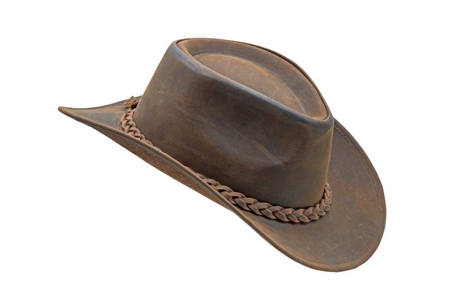 Men's Brown Genuine Leather Cowboy Western Hat