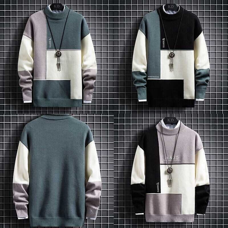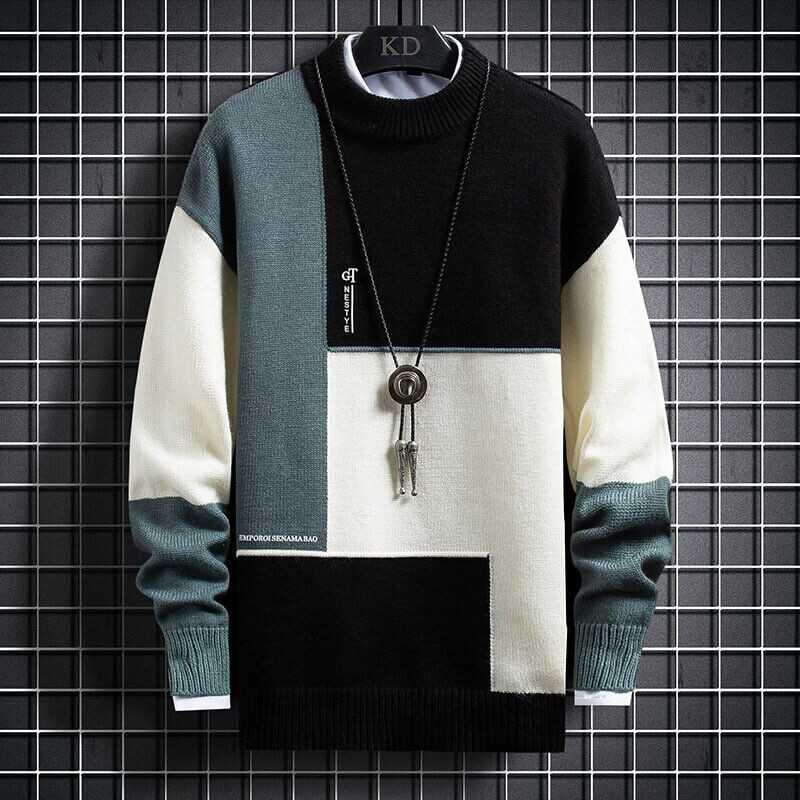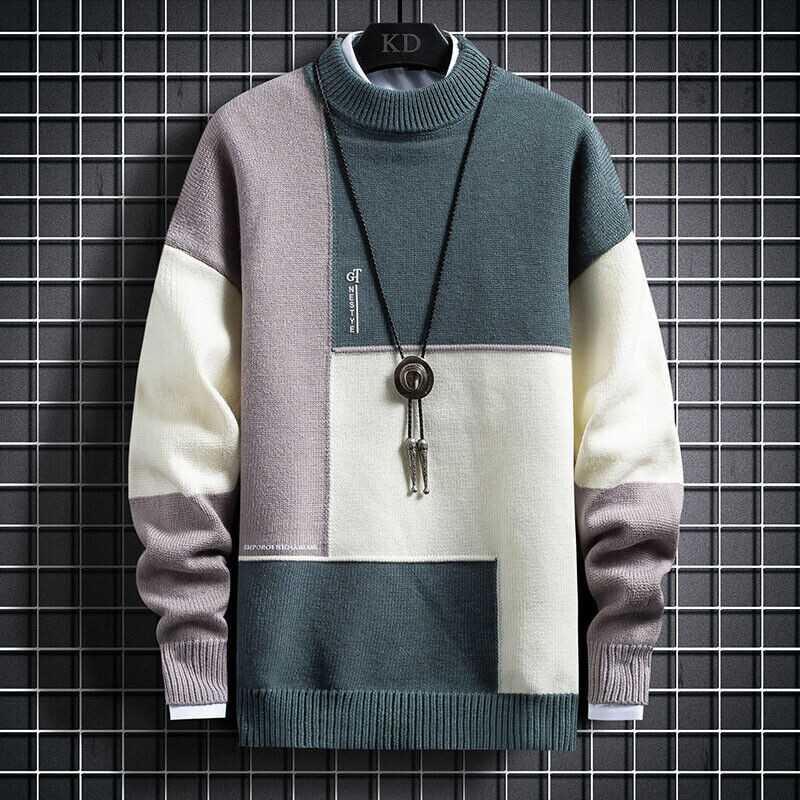 Mens Long Sleeve Warm Knitted Sweaters Pullover Winter Crew Neck Sweatshirt Tops
