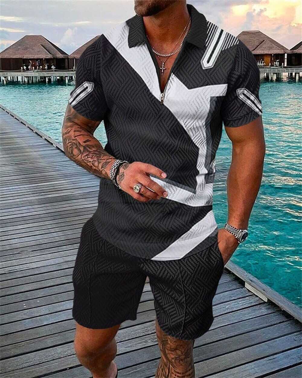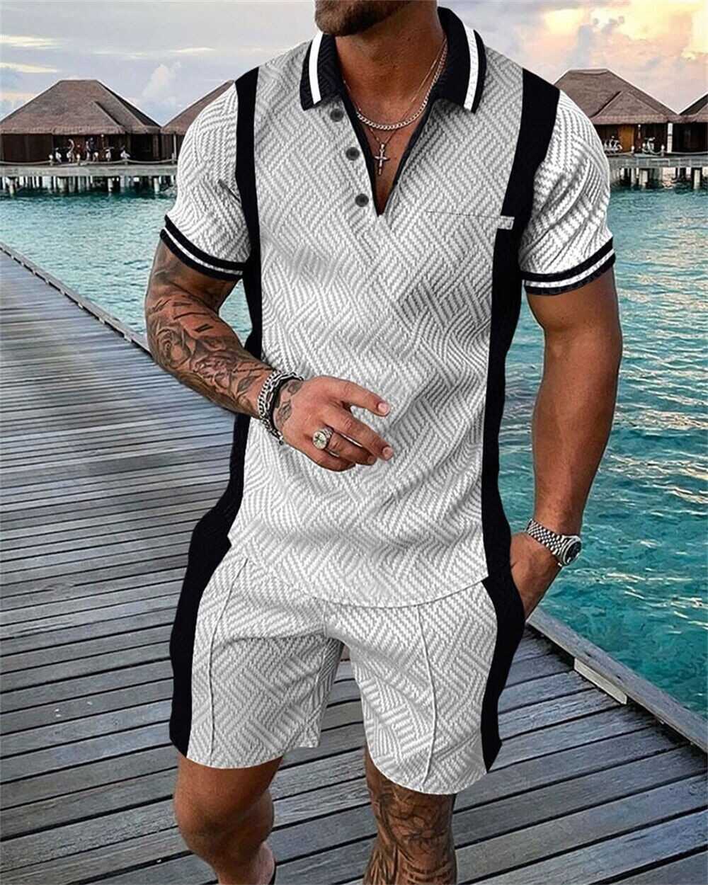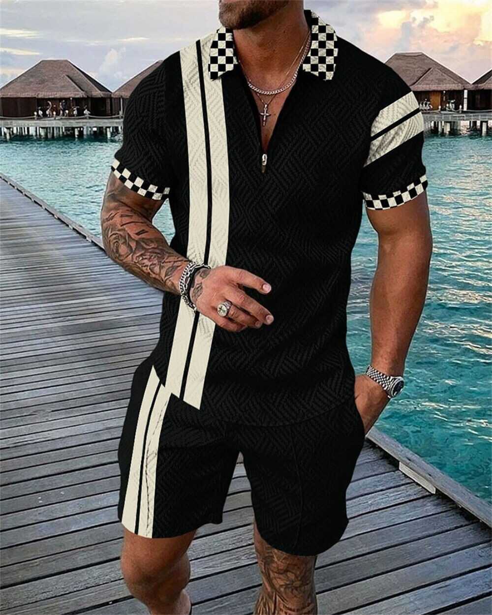 Mens Short Sets Outfits 2 Piece Tracksuit Short Sleeve Polo Shirt and Shorts Set