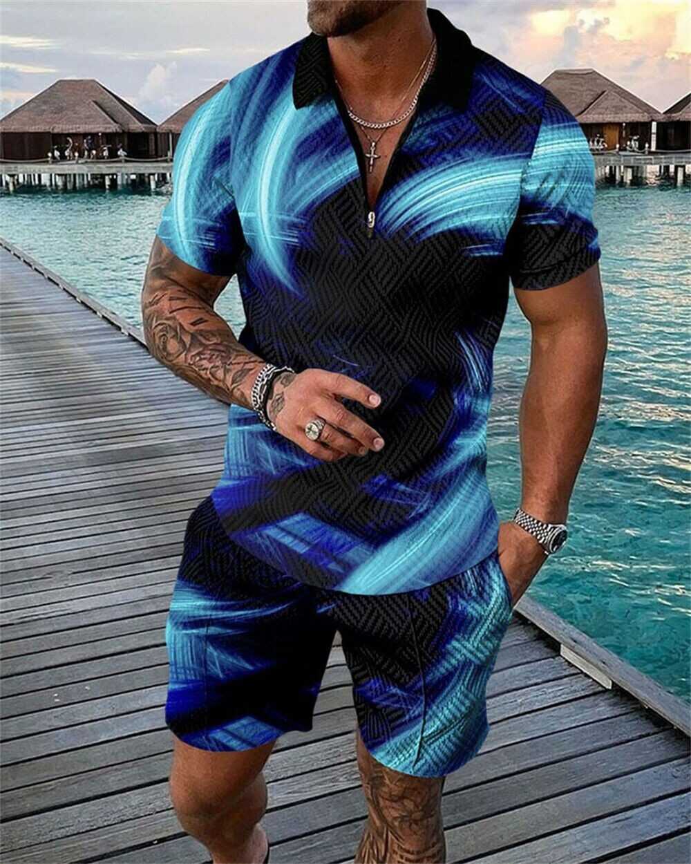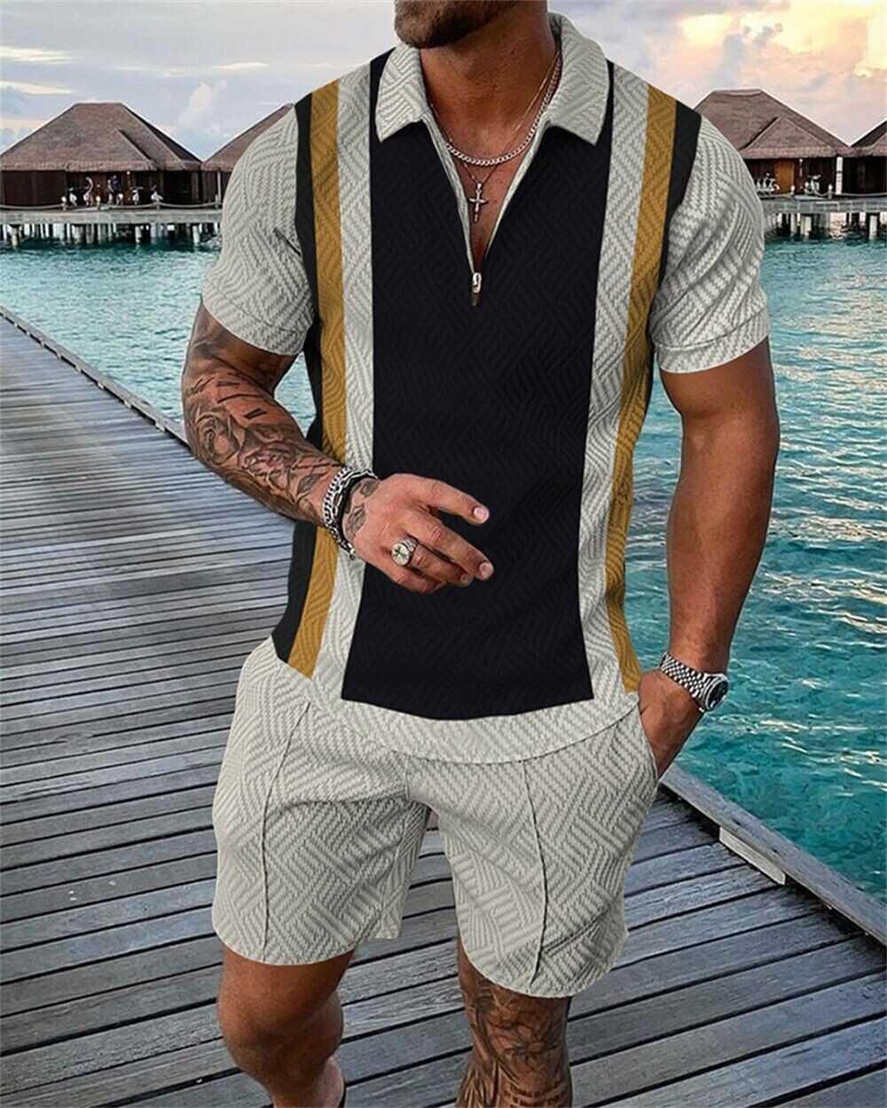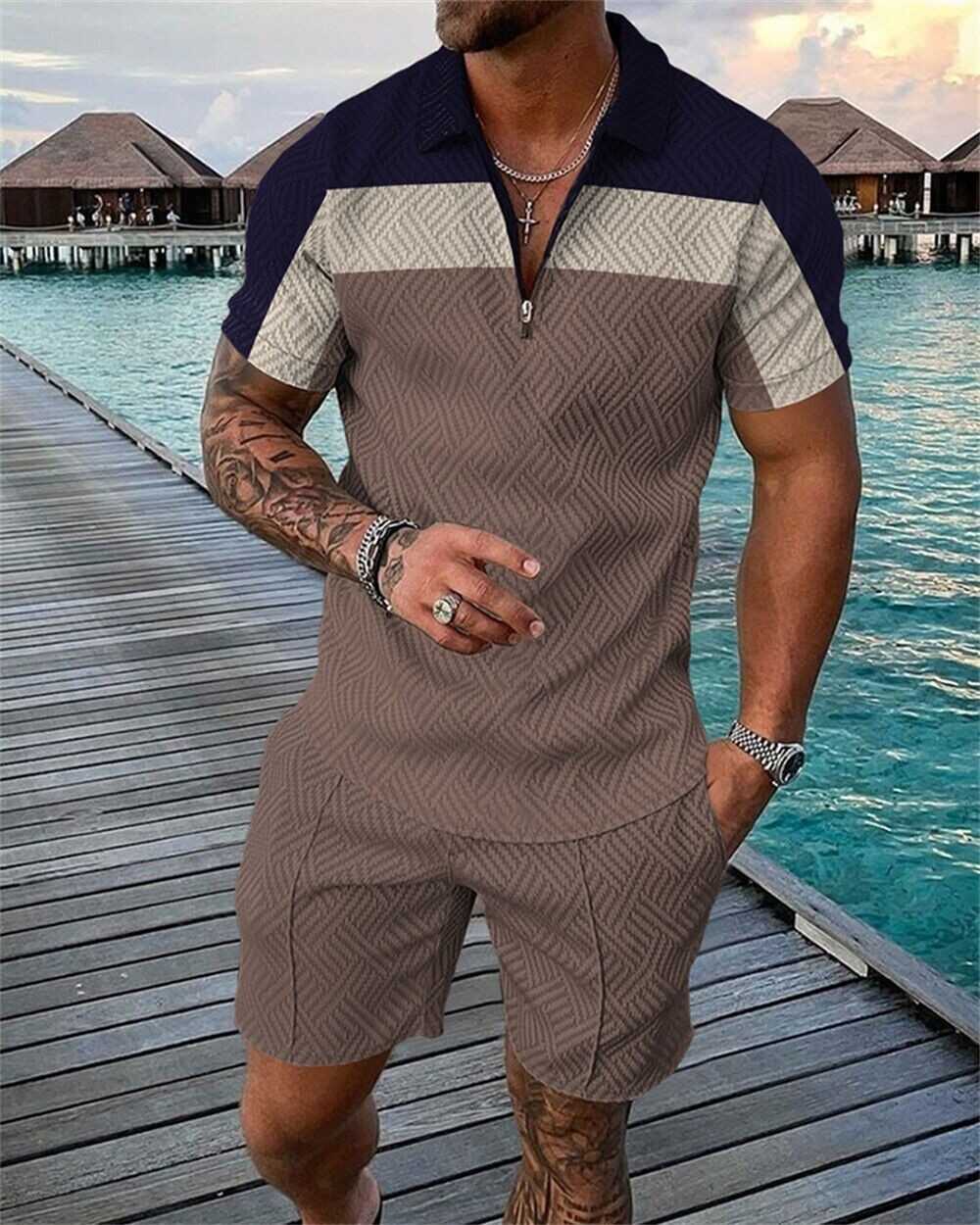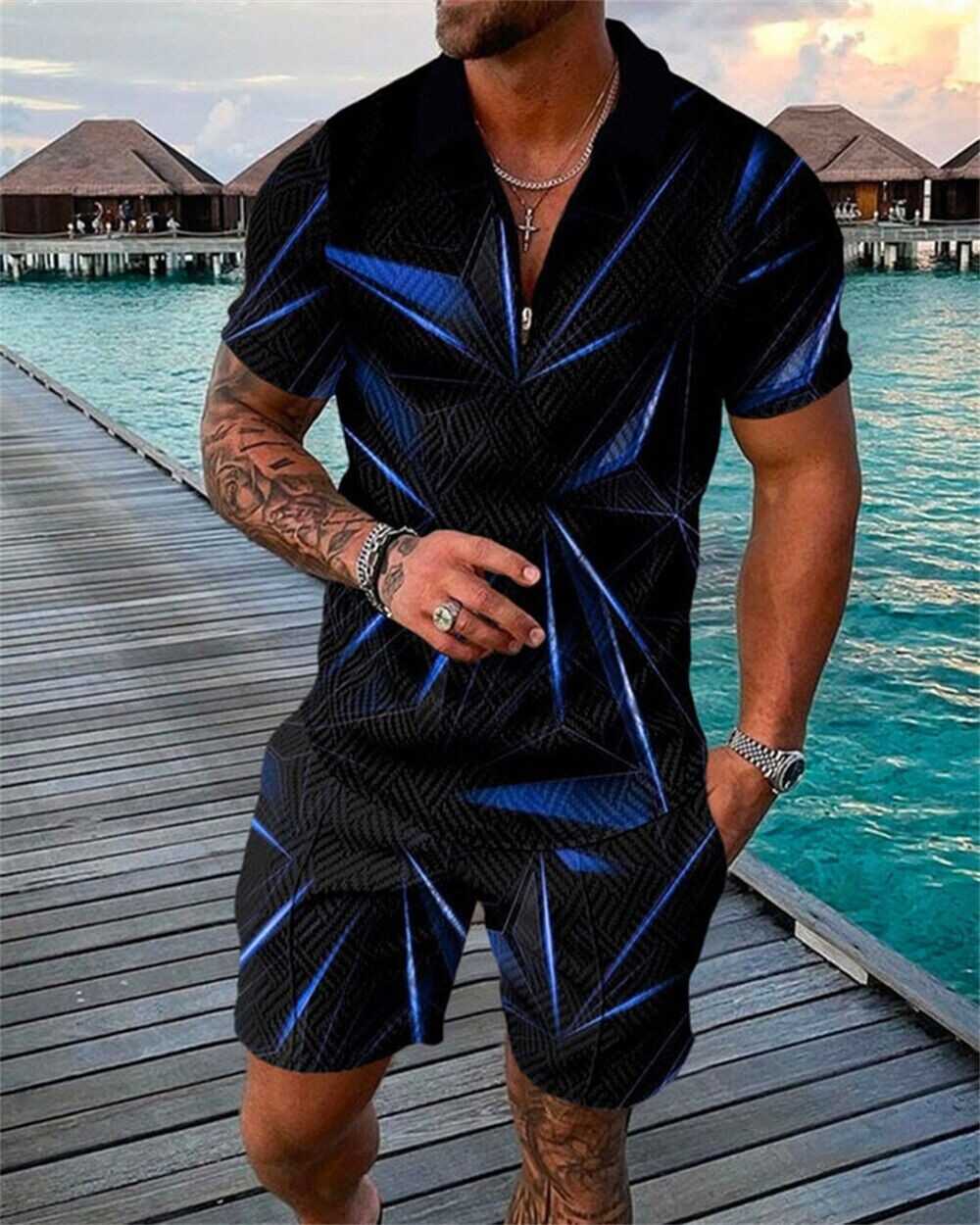 Mens Short Sets Outfits 2 Piece Tracksuit Short Sleeve Polo Shirt and Shorts Set