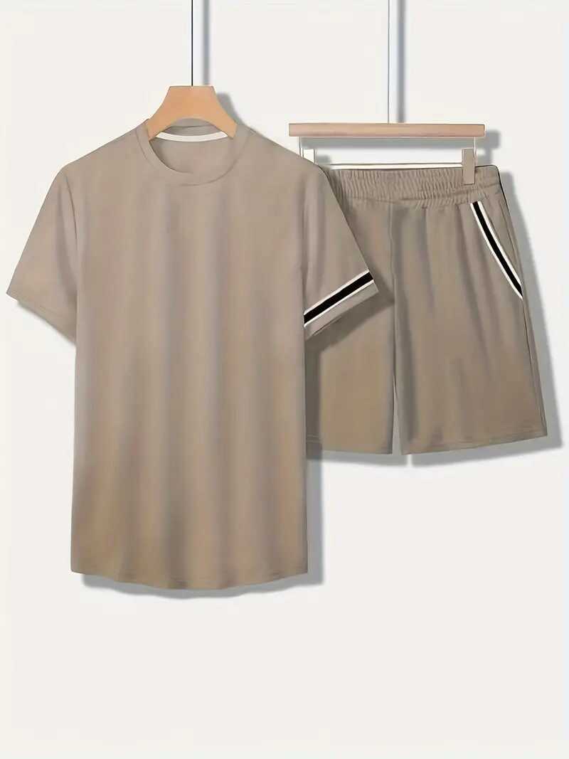 Men's Trendy Summer Striped T-Shirt Shorts Set, Oversized Casual Sports 2Pcs Outfits, Men's Clothing, Plus Size