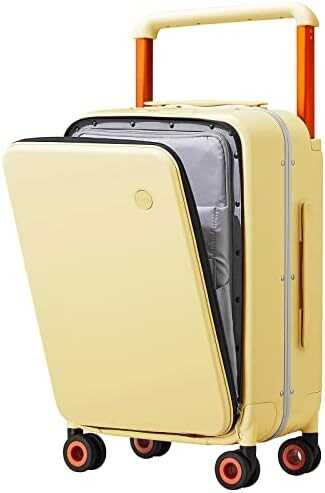 Mixi Carry On Luggage Wide Handle Luxury Design Rolling Travel Suitcase PC Hardside with Aluminum Frame Hollow Spinner Wheels, with Cover, 20 inch, Lark Yellow