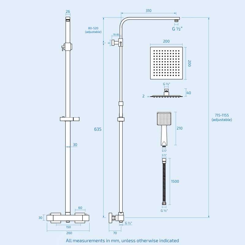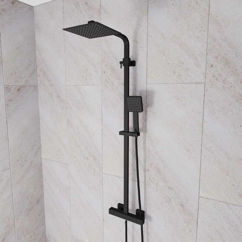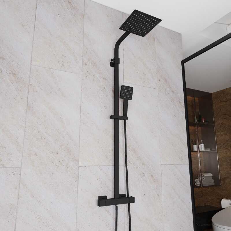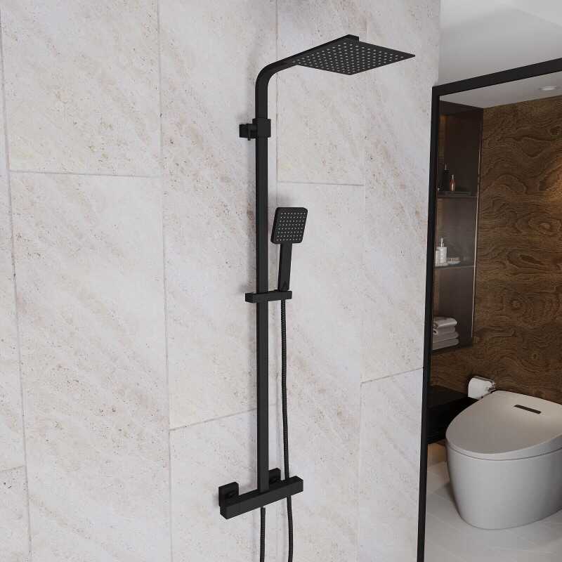 Modern Square Matte Black Exposed Thermostatic Mixer Shower Set With Shower Head