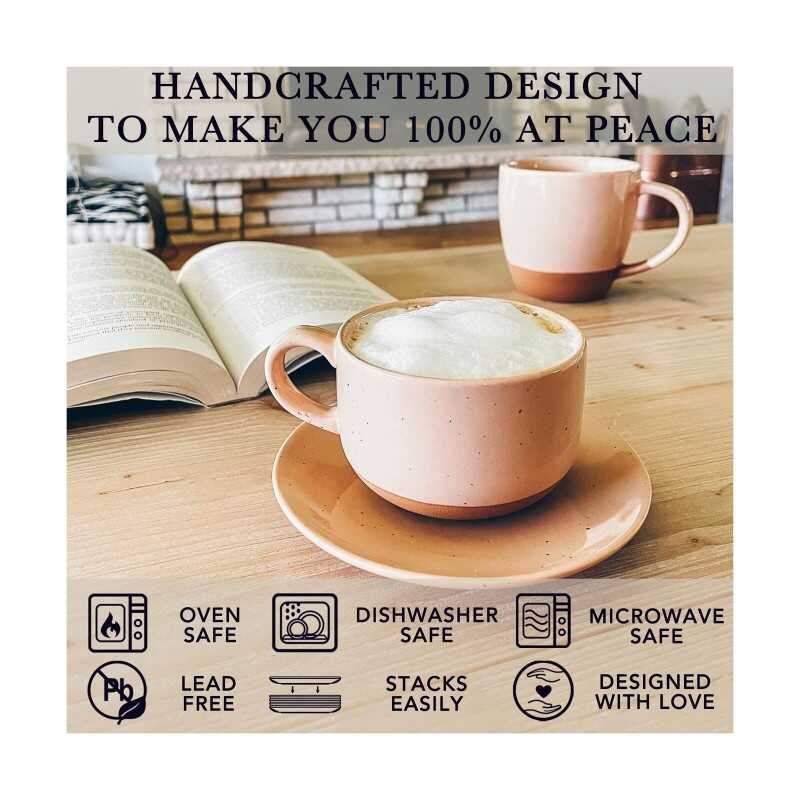 Mora Ceramics 8oz Cappuccino Mug Set of 4 - Ceramic Coffee Cups with Saucers ...
