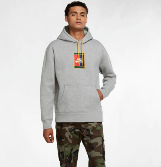 Layer up in the Nike SB Hoodie. This cozy fleece pullover superimposes the Nike SB logo over the colorful Nike Court logo for a skate spin on a heritage design.