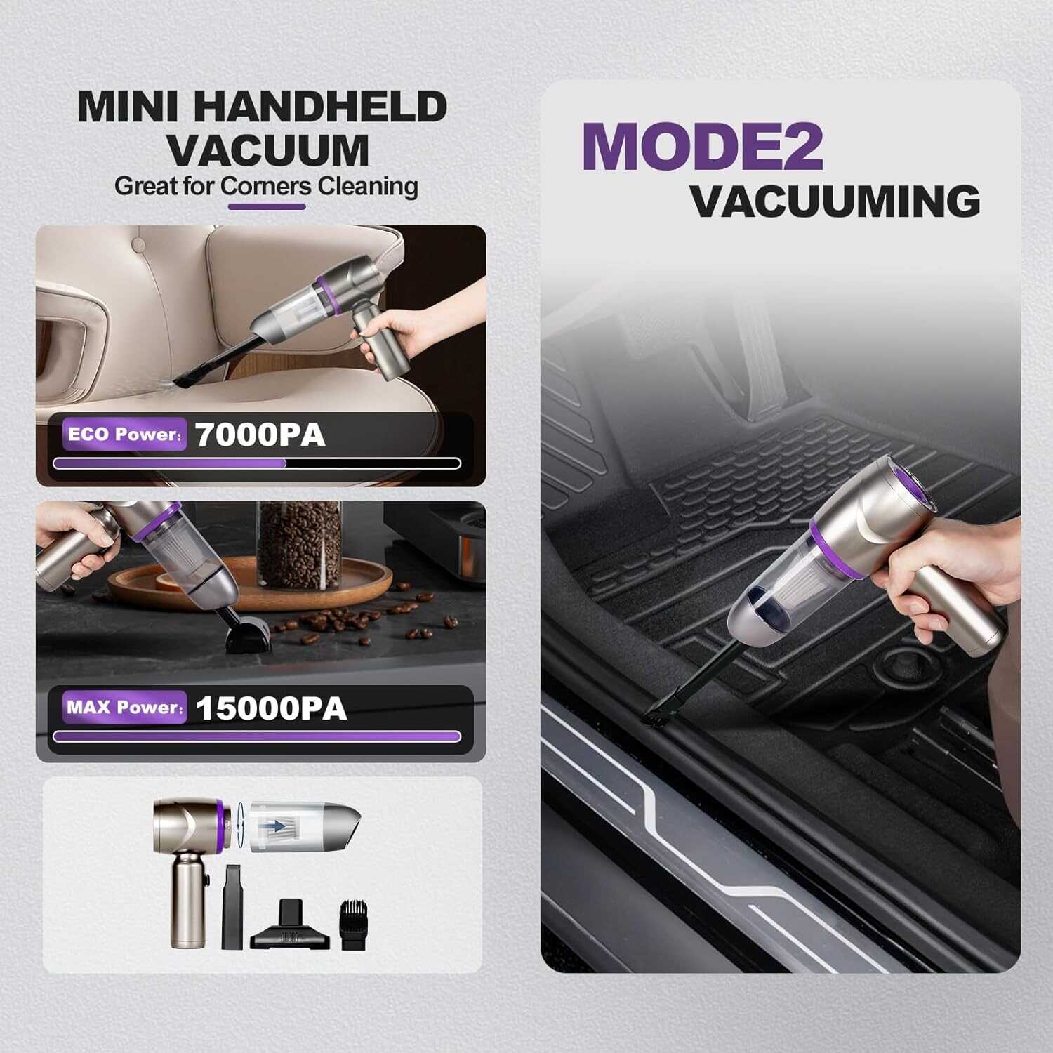 【 Air Duster & Mini Vacuum 2-in-1】- This electric air duster features 2 cleaning modes: One side for air in and the other side for air out. Just attach the blowing nozzles or suction nozzles, you can clean corners or places that cannot be reached by hand, and more convenient. Good for cleaning laptops, keyboards, computer fans, electronics, and cars.