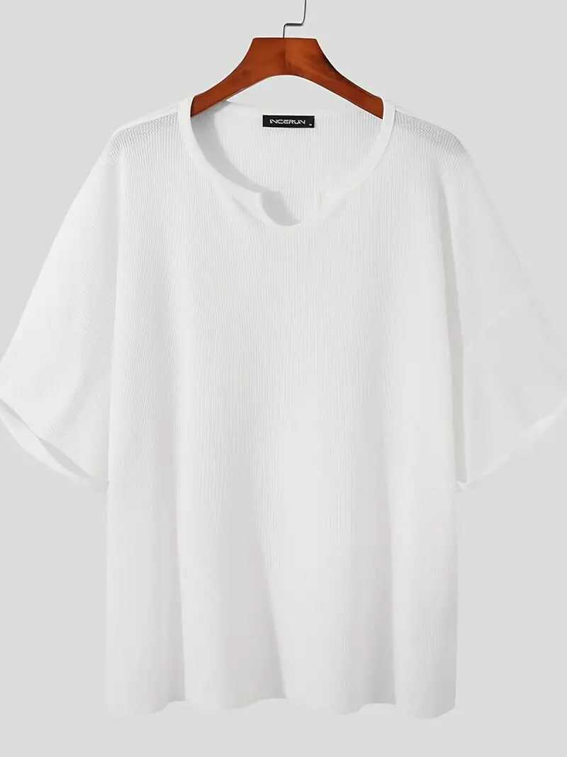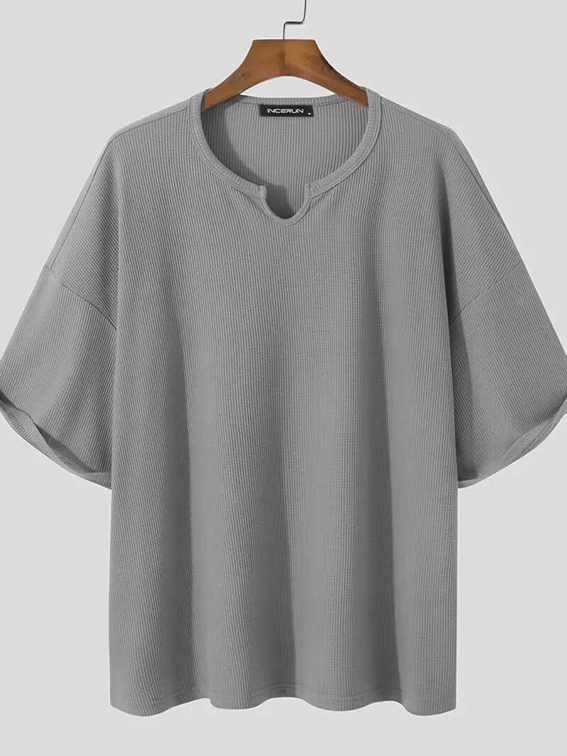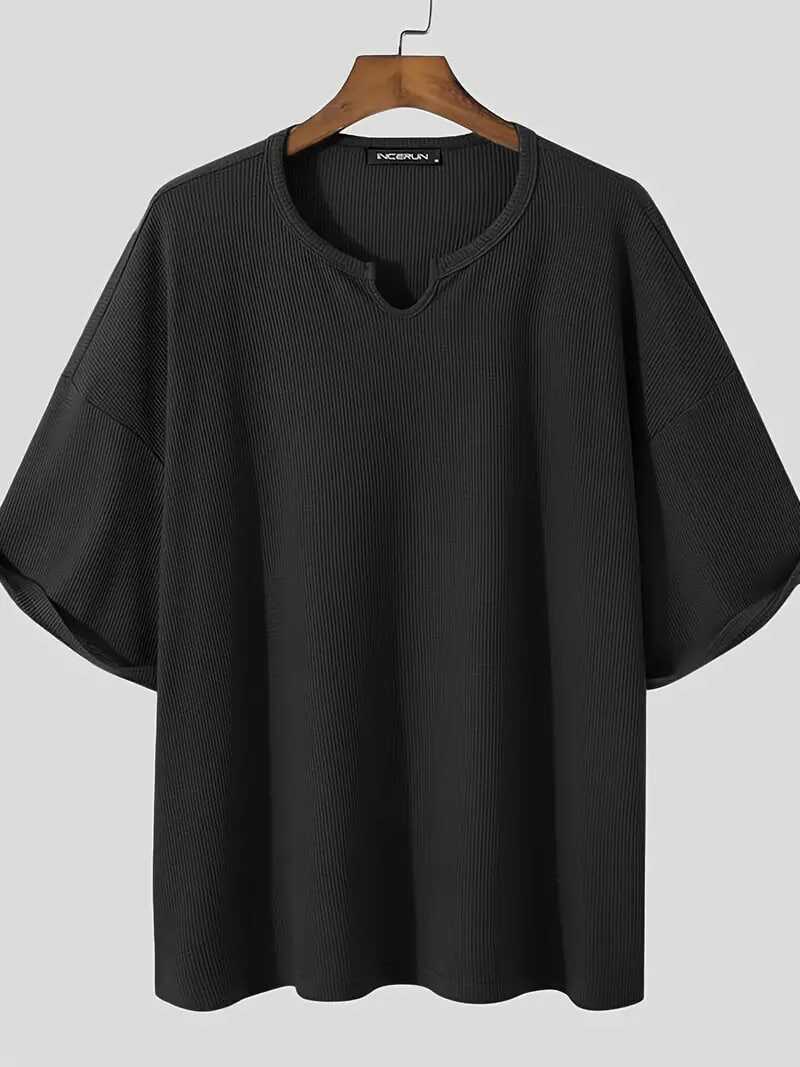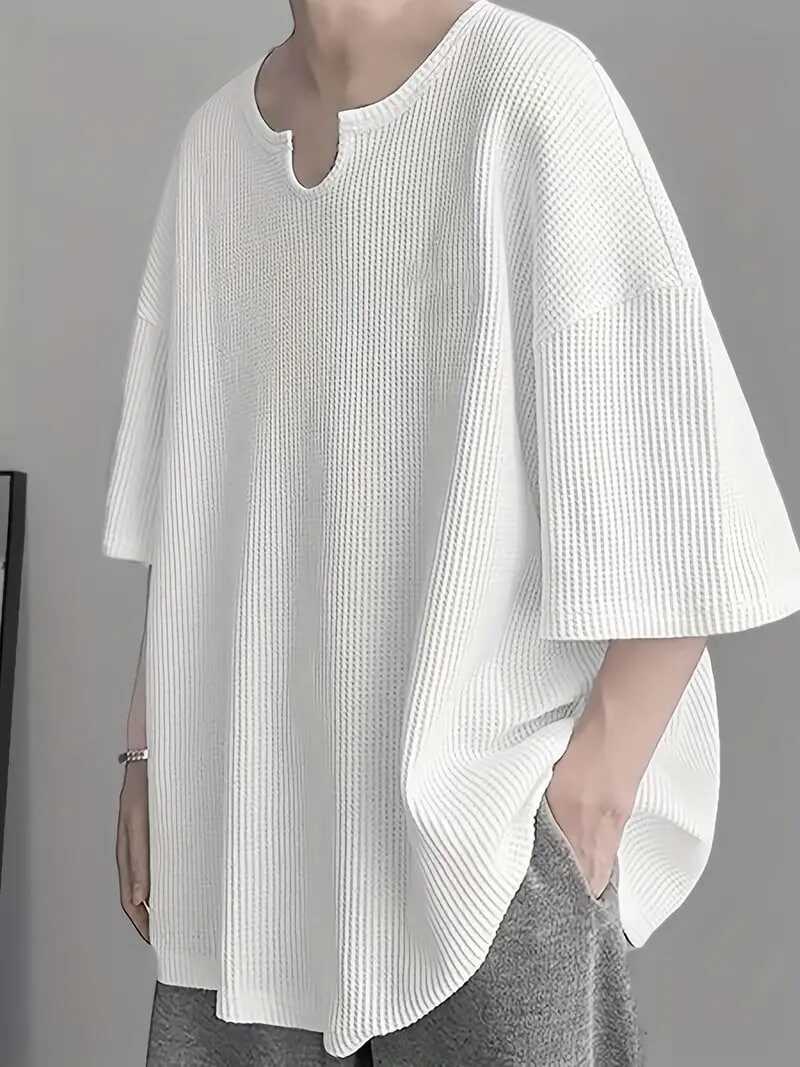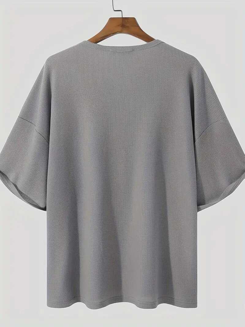 Plus Size Men's Casual Streetwear Tops Solid Textured Fashion Loose Drop Shoulder T-shirts