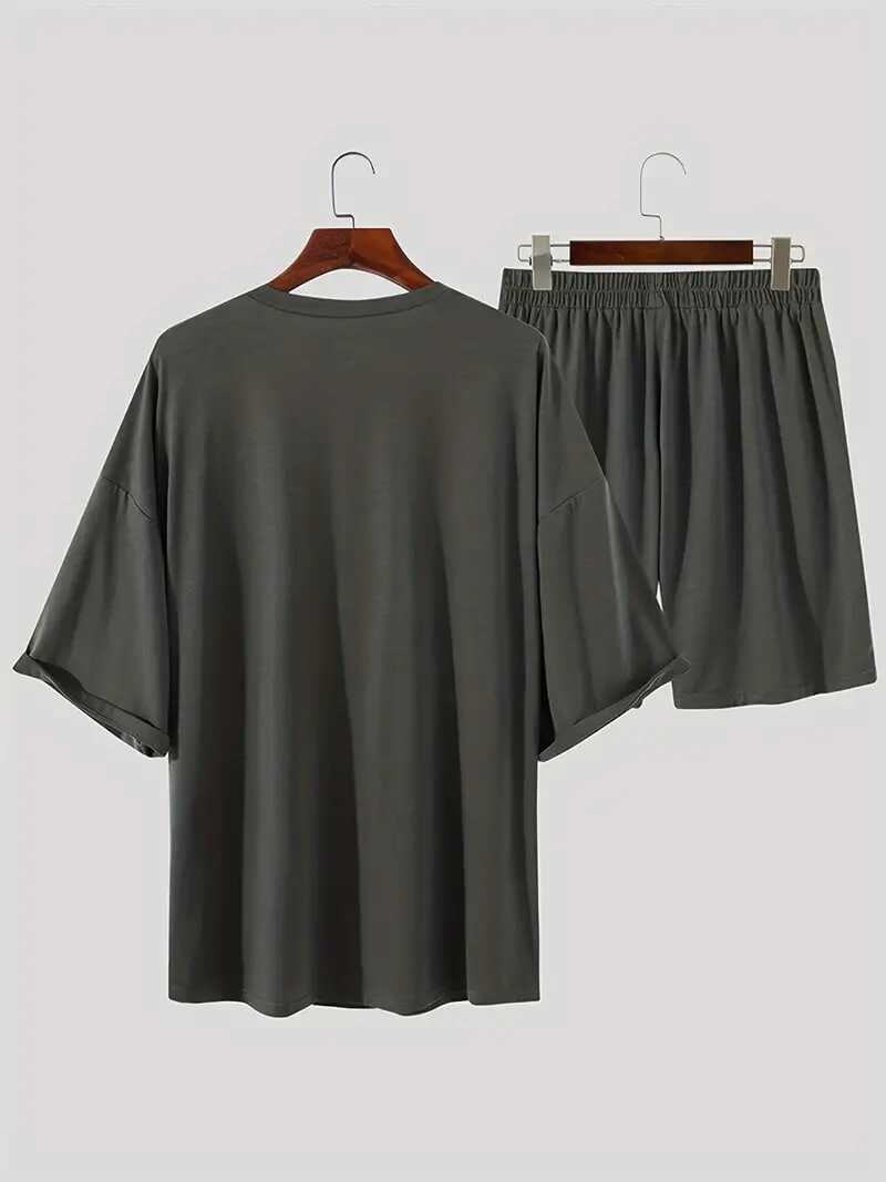 plus size mens trendy solid crew neck short sleeve t shirt loose shorts with pockets home pajamas sets casual sets for summer details 0plus size mens trendy solid crew neck short sleeve t shirt loose shorts with pockets home pajamas sets casual sets for summer details 0