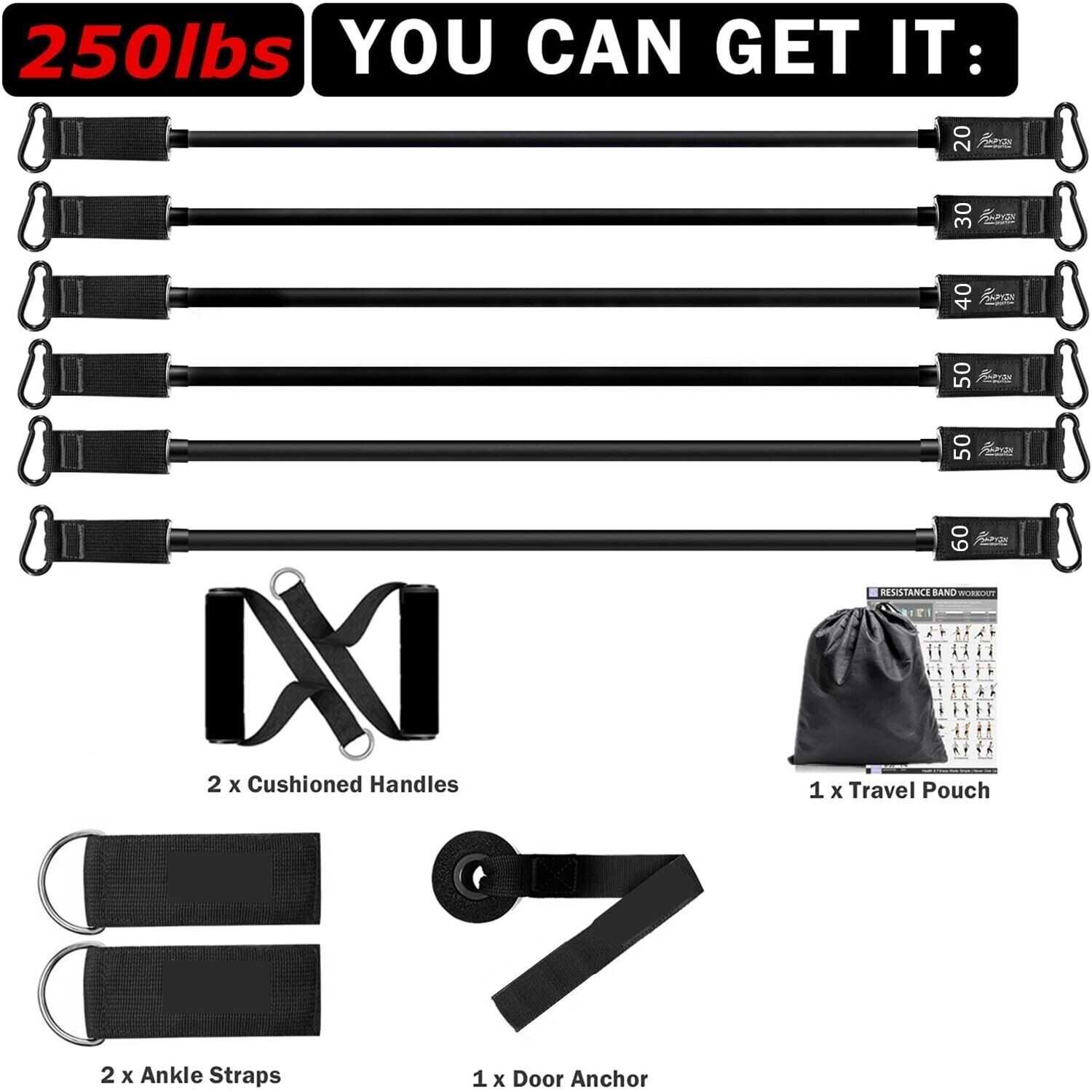 Resistance Bands Set Workout Gym Pull Rope Latex Tube Sports Equipment 250lbs