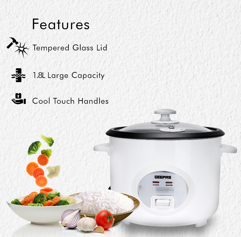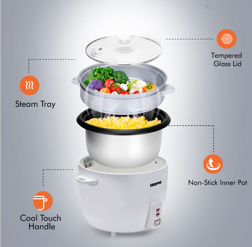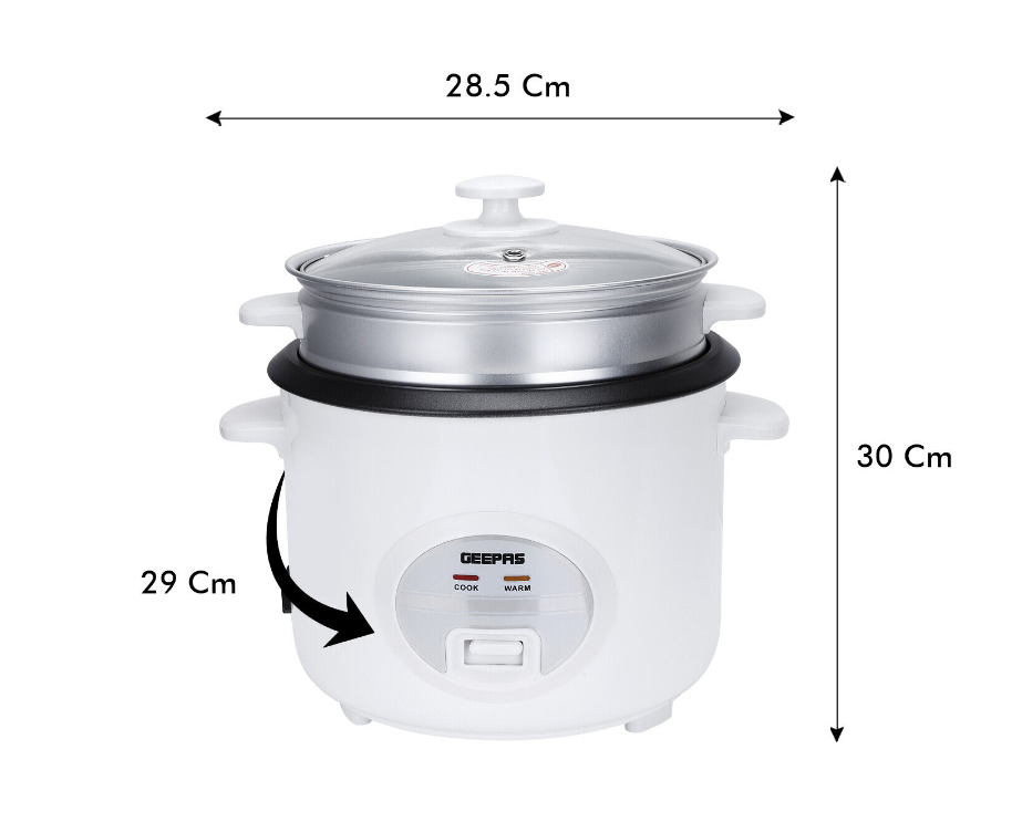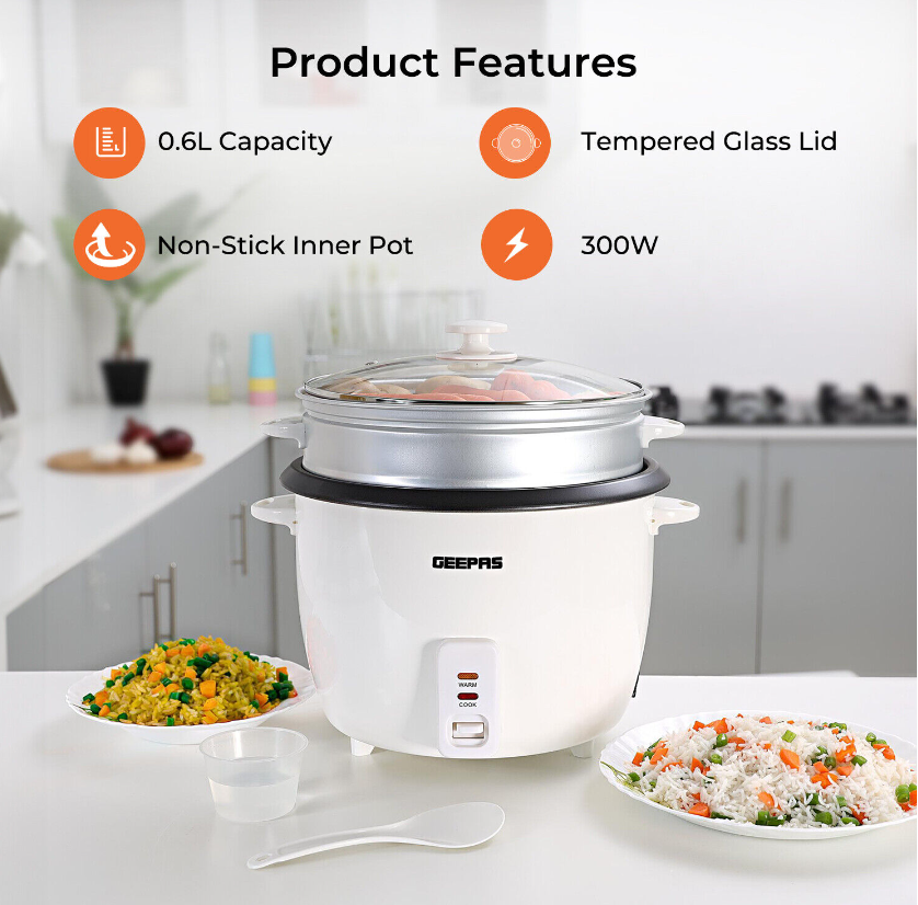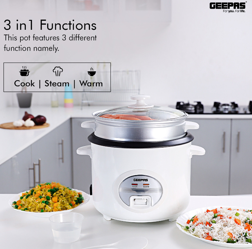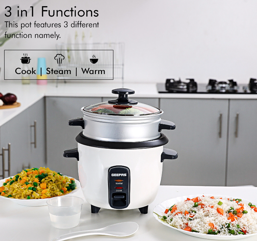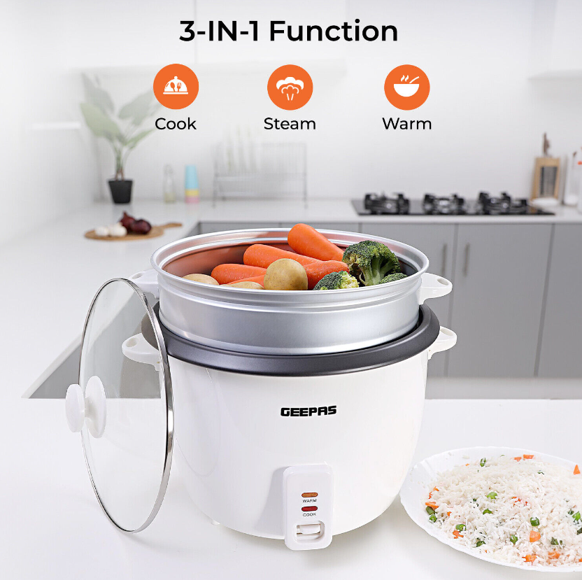 Rice Cooker Steamer Pot 3 in 1 Cooking Non Stick Electric Keep Warm Geepas
