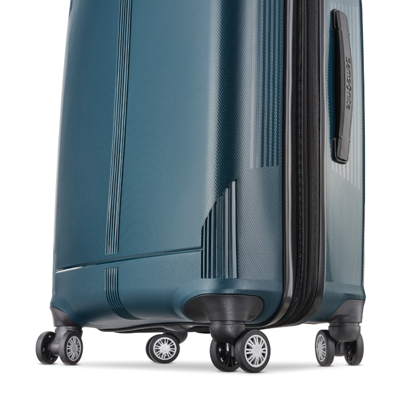 •Dual-stop pull handle, plus retractable rubberized carry handles