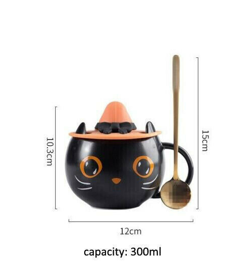 2021 Starbucks Black Cat Cup With Witch Cap Lid&Spoon Water Mug Halloween Gifts