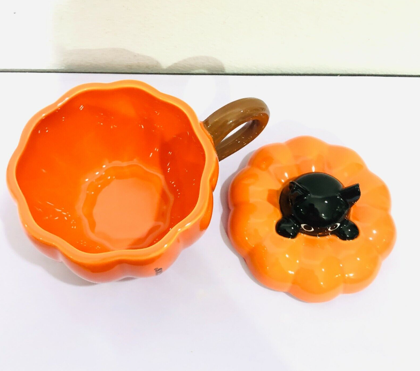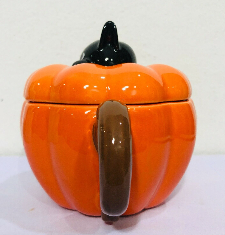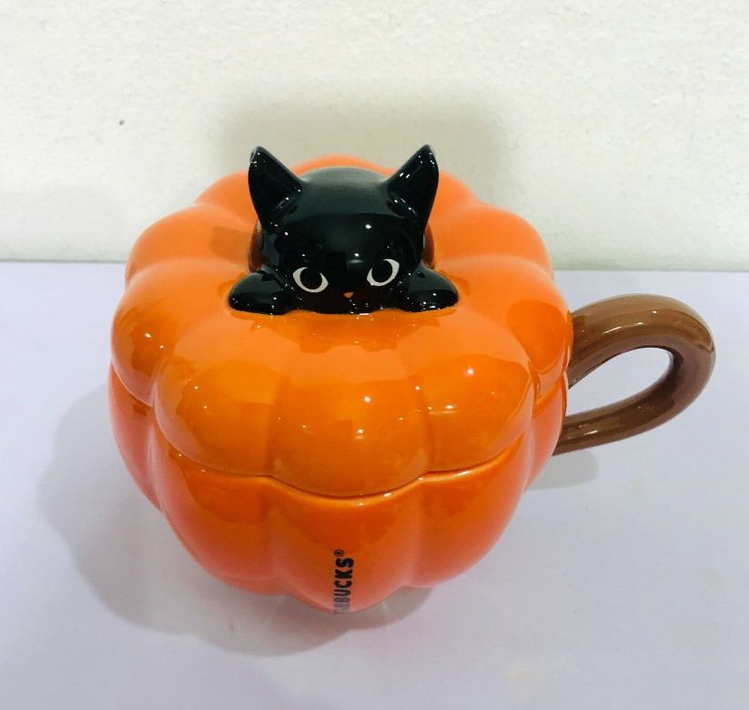 Starbucks Ceramic Mug Halloween Pumpkin 12oz.Lid Black Cat