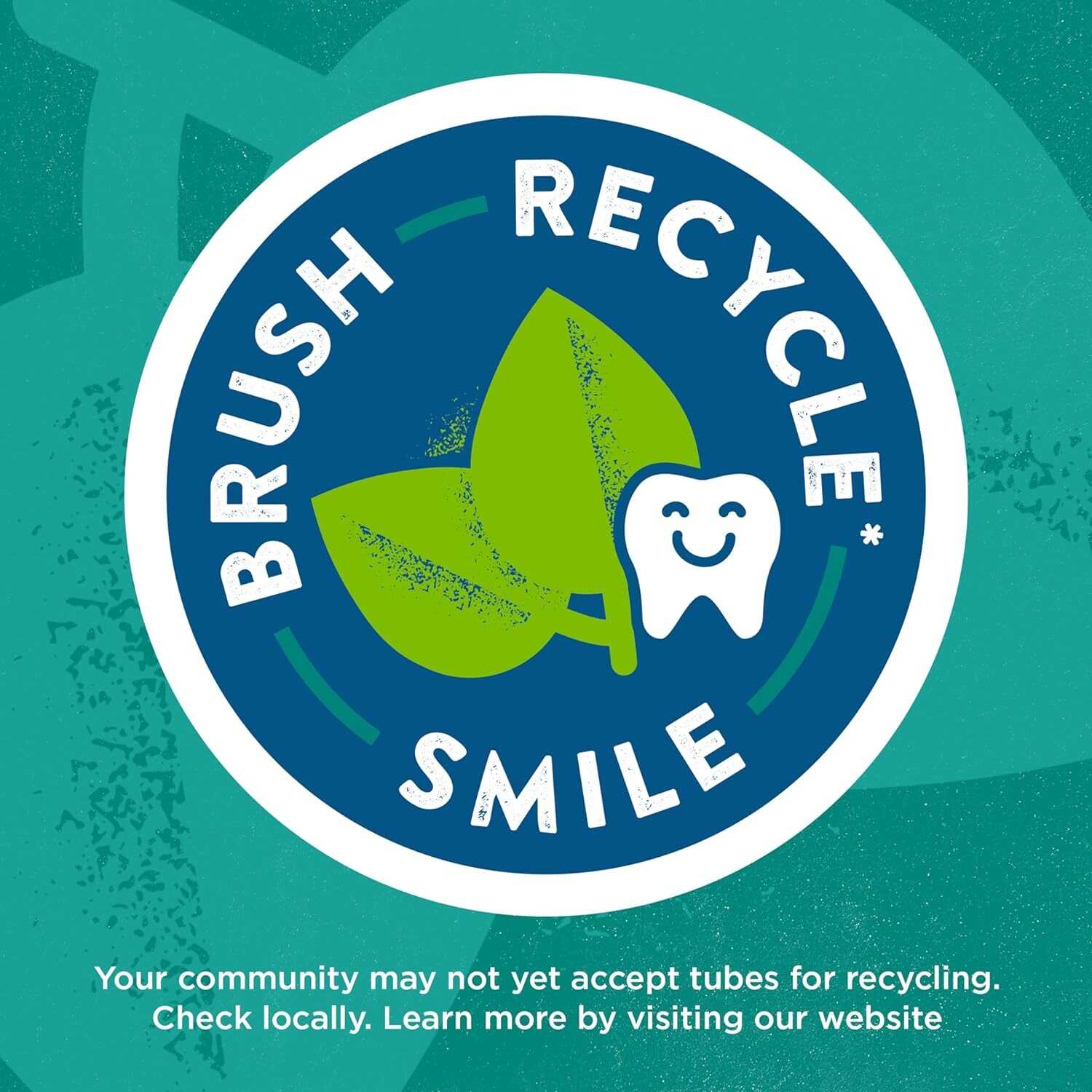 • RECYCLABLE TUBE: Look for the blue recycling flag, squeeze out as much toothpaste as you can, replace the cap, and recycle