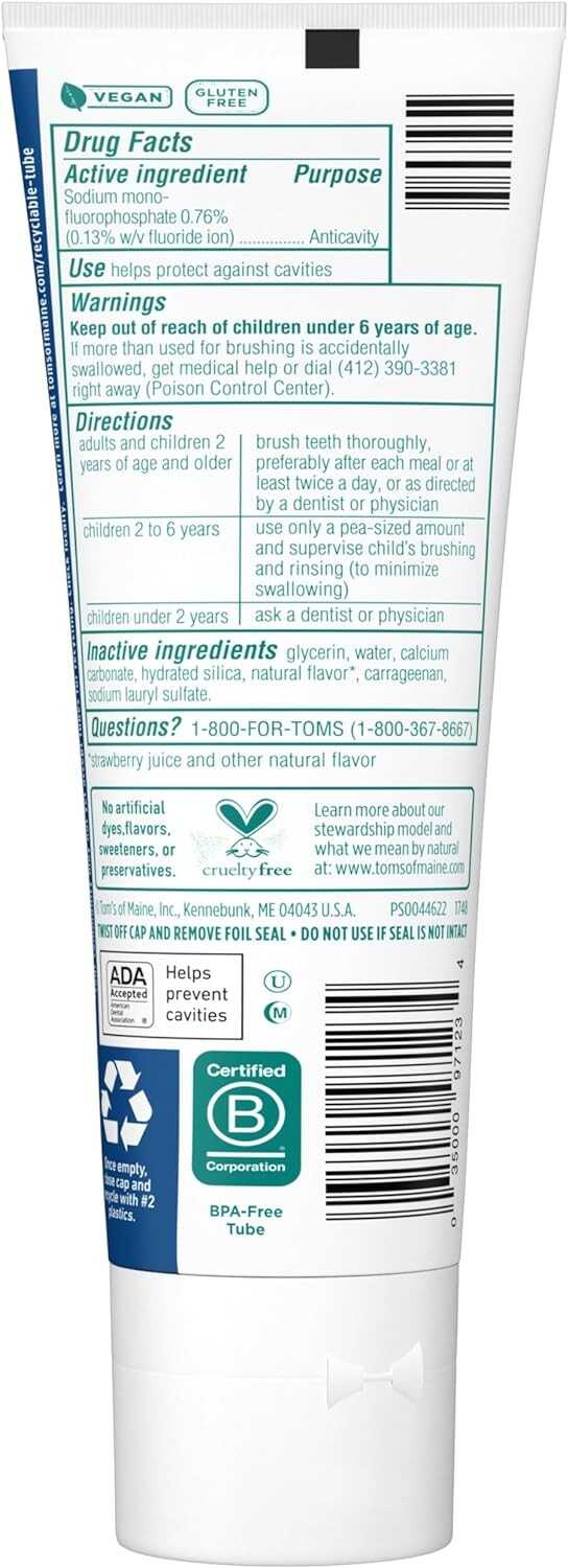 • WHAT YOU'LL GET: Three 5.1-ounce tubes of Tom's of Maine Kids Fluoride Toothpaste in Silly Strawberry Flavor