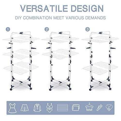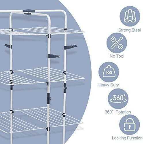 TOOLF Clothes Drying Rack, 3-Tier Collapsible Laundry Rack Stand Garment Drying