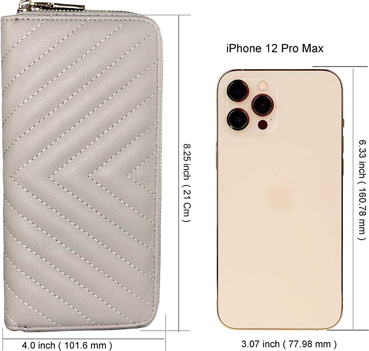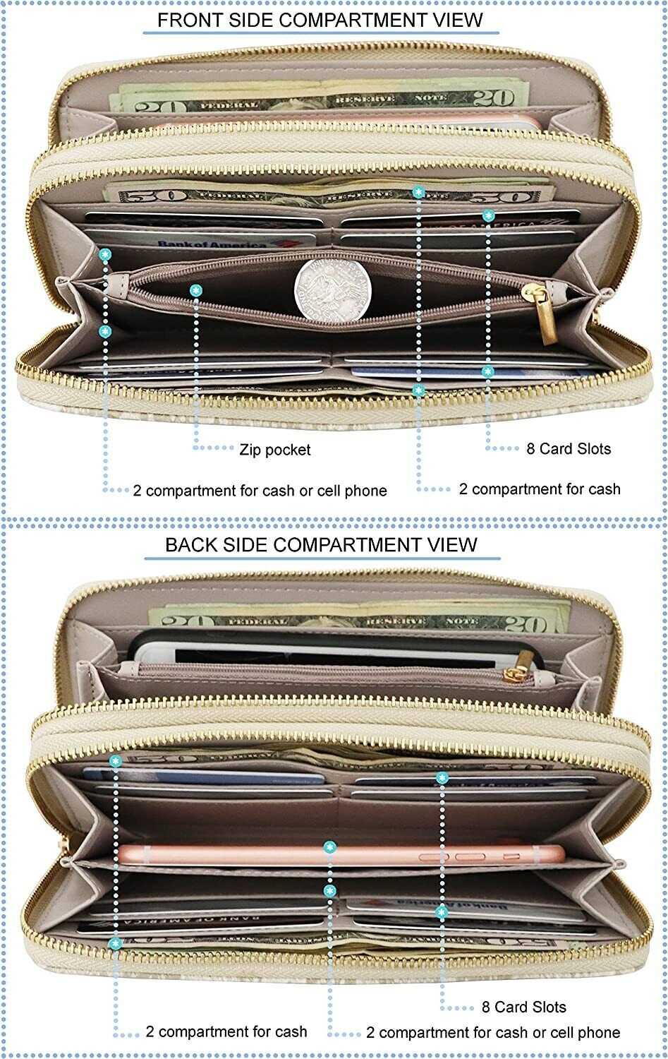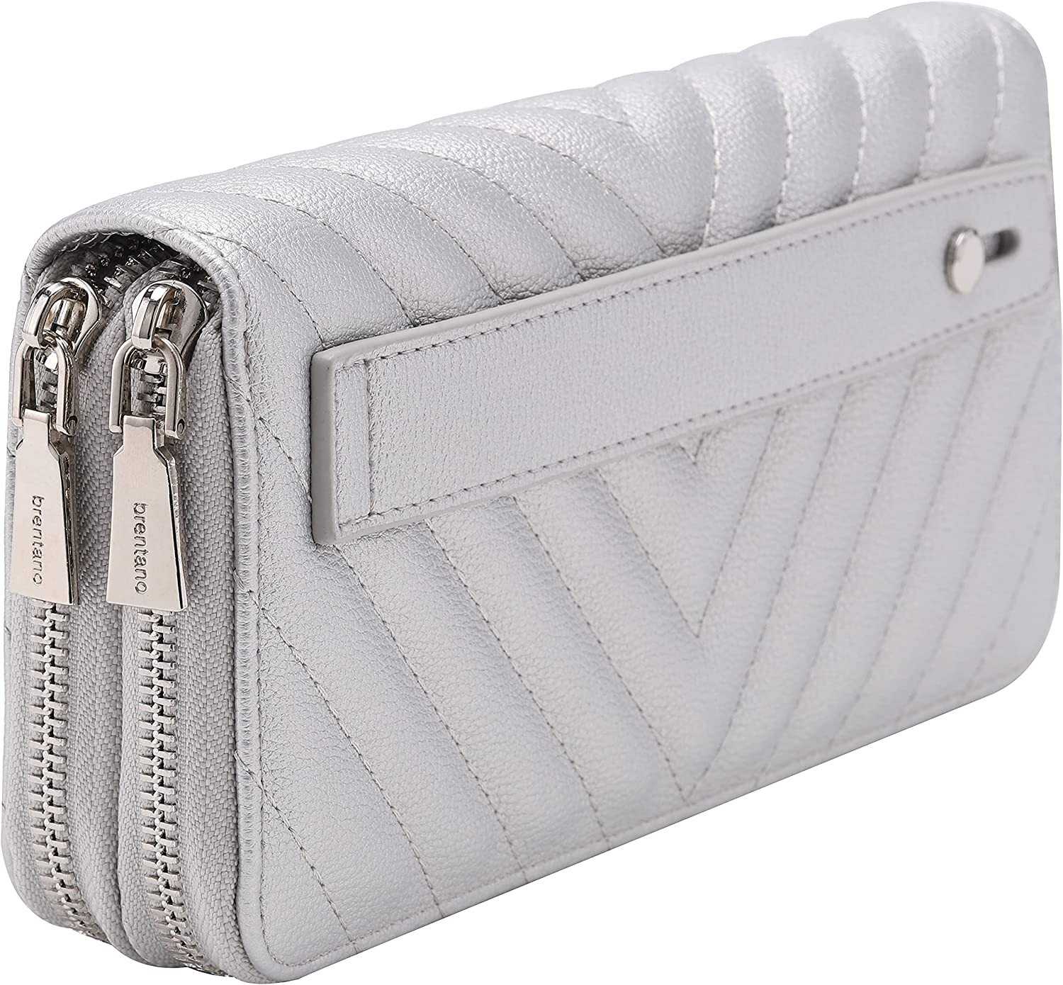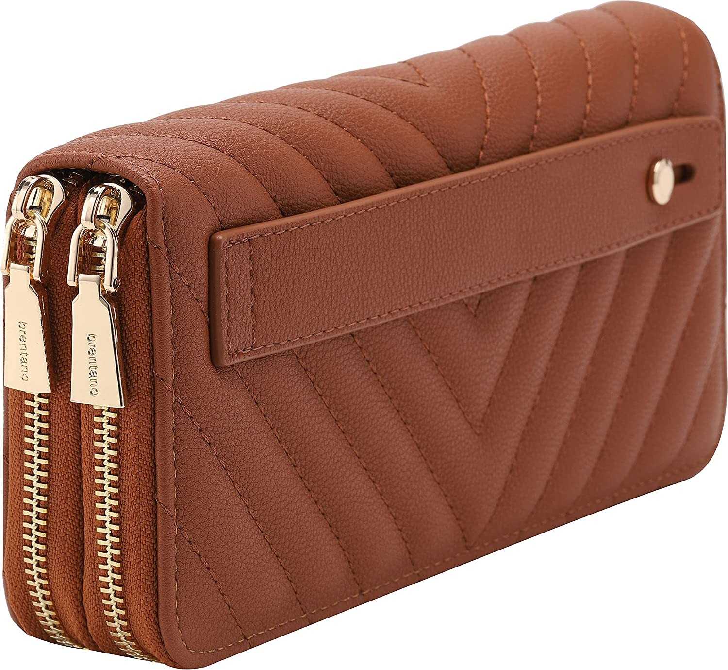 Vegan Leather Double Zipper Pocket Wallet with Grip Hand Strap (Chevron Embroide